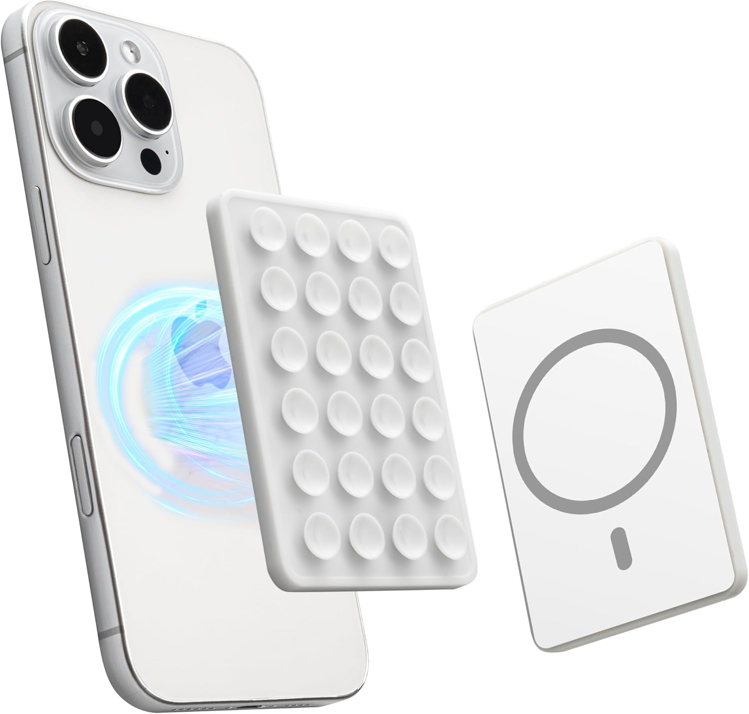 Sucky Upgraded Magnetic Suction Cell Phone Grip for MagSafe Case, Silicone Octo Cup Buddy Holder, Durable Magnet Phone Accessory for iPhone and Android (Pearl White)