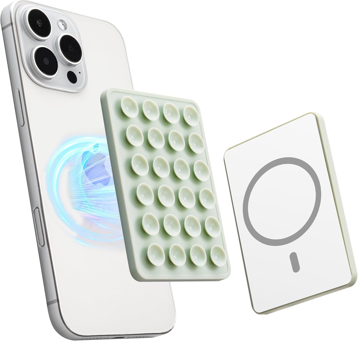 Sucky Upgraded Magnetic Suction Cell Phone Grip for MagSafe Case, Silicone Octo Cup Buddy Holder, Durable Magnet Phone Accessory for iPhone and Android (Light Green)