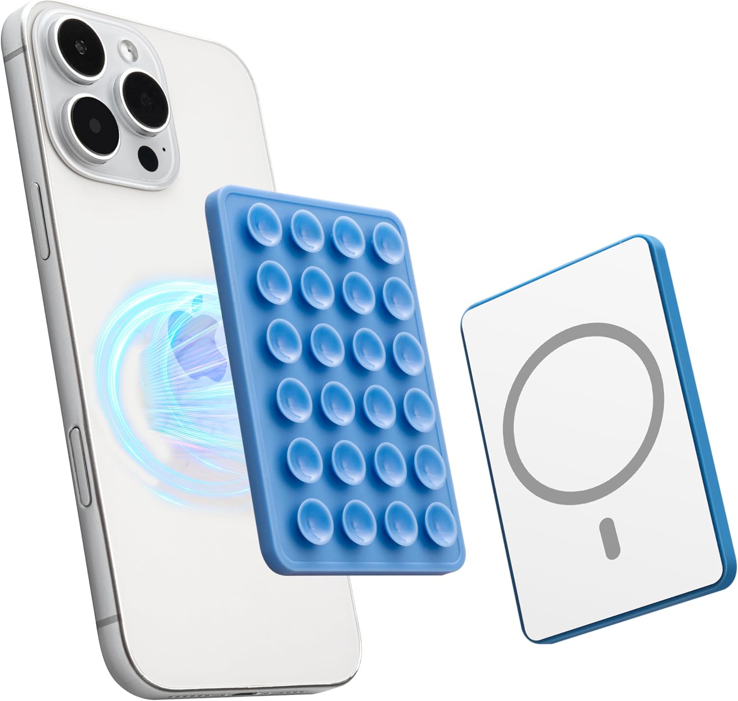 Sucky Upgraded Magnetic Suction Cell Phone Grip for MagSafe Case, Silicone Octo Cup Buddy Holder, Durable Magnet Phone Accessory for iPhone and Android (Blue)