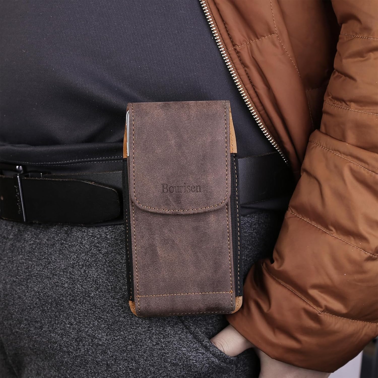 Phone Holster Pouch Case Belt Clip Loops Card Slot for Man iPhone12 13 14 15 16 17,11 12 13 14 15 16 17pro,17Air/Samsung S25 S24 S23 S22 S21 S20/LG/Moto (Brown&Yellow, L(6.1" x3.2''x0.8))