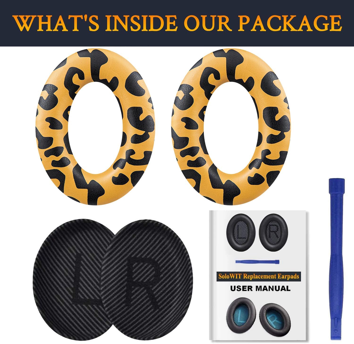 SoloWIT Replacement Earpads Cushions for Bose QuietComfort 35 (QC35) & Quiet Comfort 35 II (QC35 ii) Headphones, Ear Pads with Softer Leather, Noise Isolation Foam, Added Thickness (Tiger Stripes)