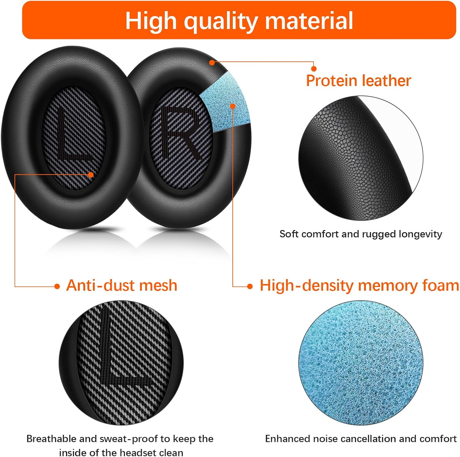 - Soft and durable: The internal seams of this replacement ear pad kit for Bose QC35 are made of adhesive reinforced stitching, which prevents the ear pad from cracking and extends its service life. Equipped with a dust-proof net to protect against wax, oil, dust, and sweat.