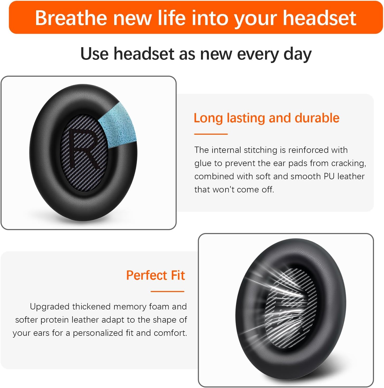 - Unmatched comfort: These replacement ear pads are made of high-quality foam and protein leather, which are as soft as the original ear pads, achieving a perfect balance between comfort and durability. And lightweight and breathable, suitable for listening to music all day long, without swelling or pain.