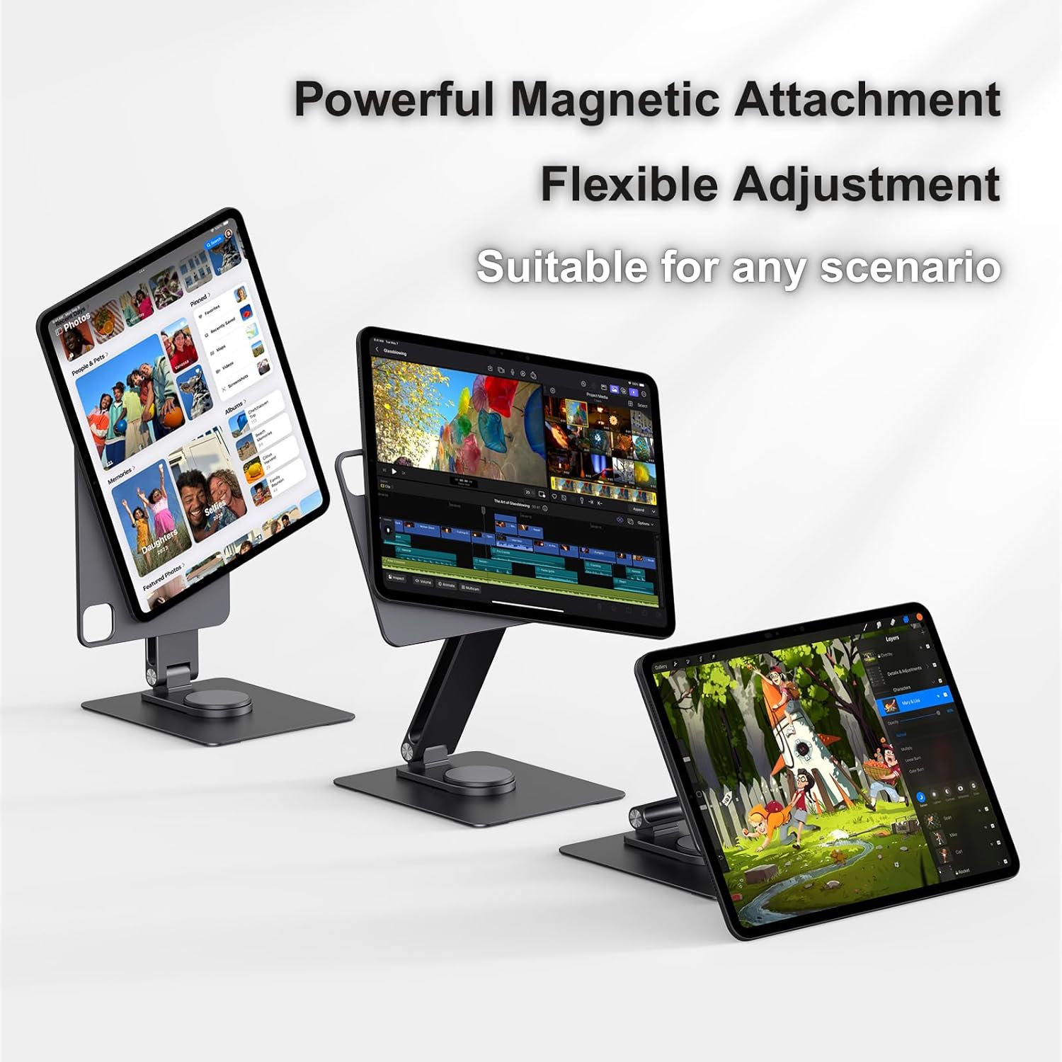 Magnetic iPad Pro M4 13-inch Stand with Wireless Charging 18W, 360° Rotating Aluminum Tablet Holder for iPad Pro M4 13-inch, Adjustable Desk Mount Series (M4-13inch)