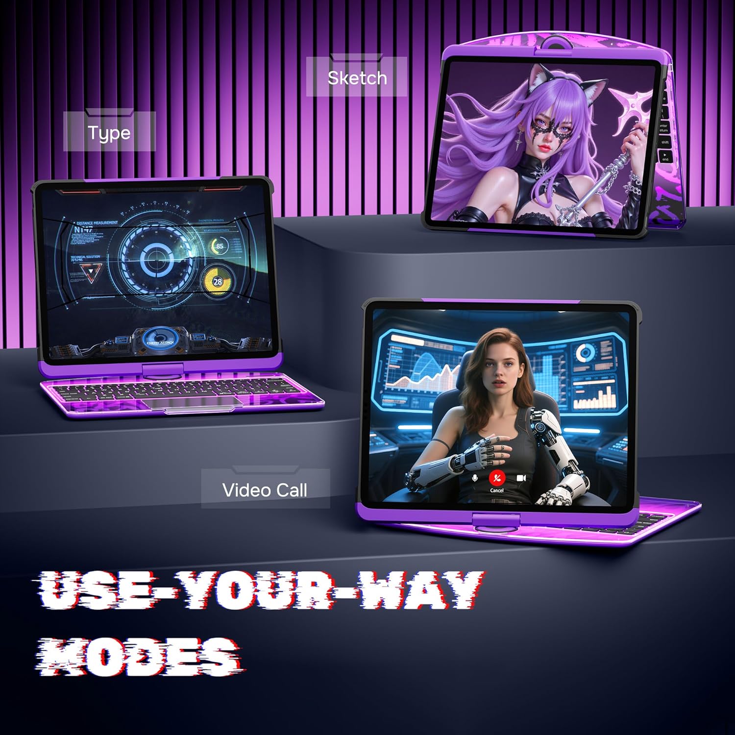 - 360° Rotating Stand & Multiple Viewing Angles: Experience complete flexibility with the 360° swivel base, featuring five adjustable angles. Whether you're typing, drawing, or watching videos, easily adjust your iPad for optimal comfort and efficiency in any position.