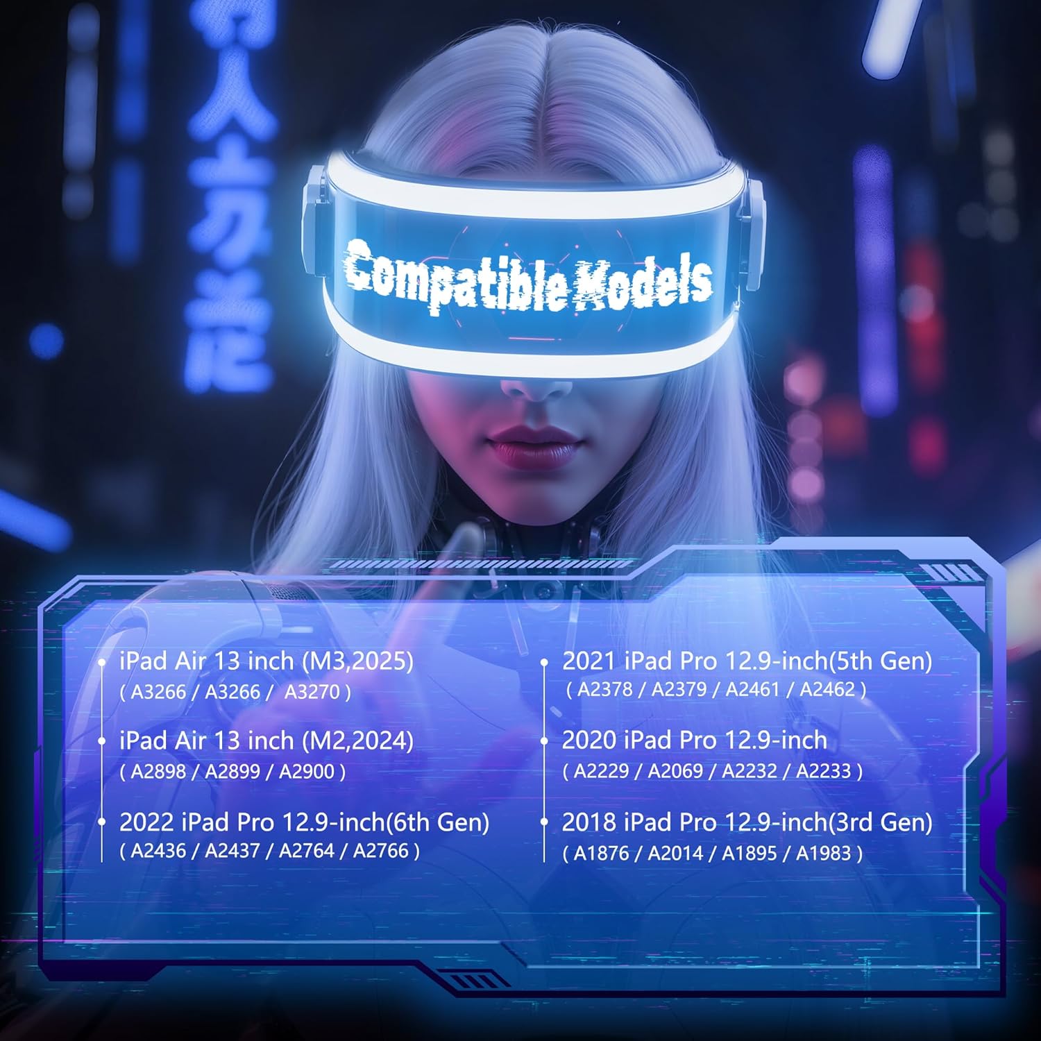 - Compatibility: Perfectly designed for the 2024 iPad Air 13-inch (M2), 2025 iPad Air 13-inch (M3), as well as the 2022 iPad Pro 12.9-inch (6th Gen), 2021 iPad Pro 12.9-inch (5th Gen), 2020 iPad Pro 12.9-inch (4th Gen), and 2018 iPad Pro 12.9-inch (3rd Gen).