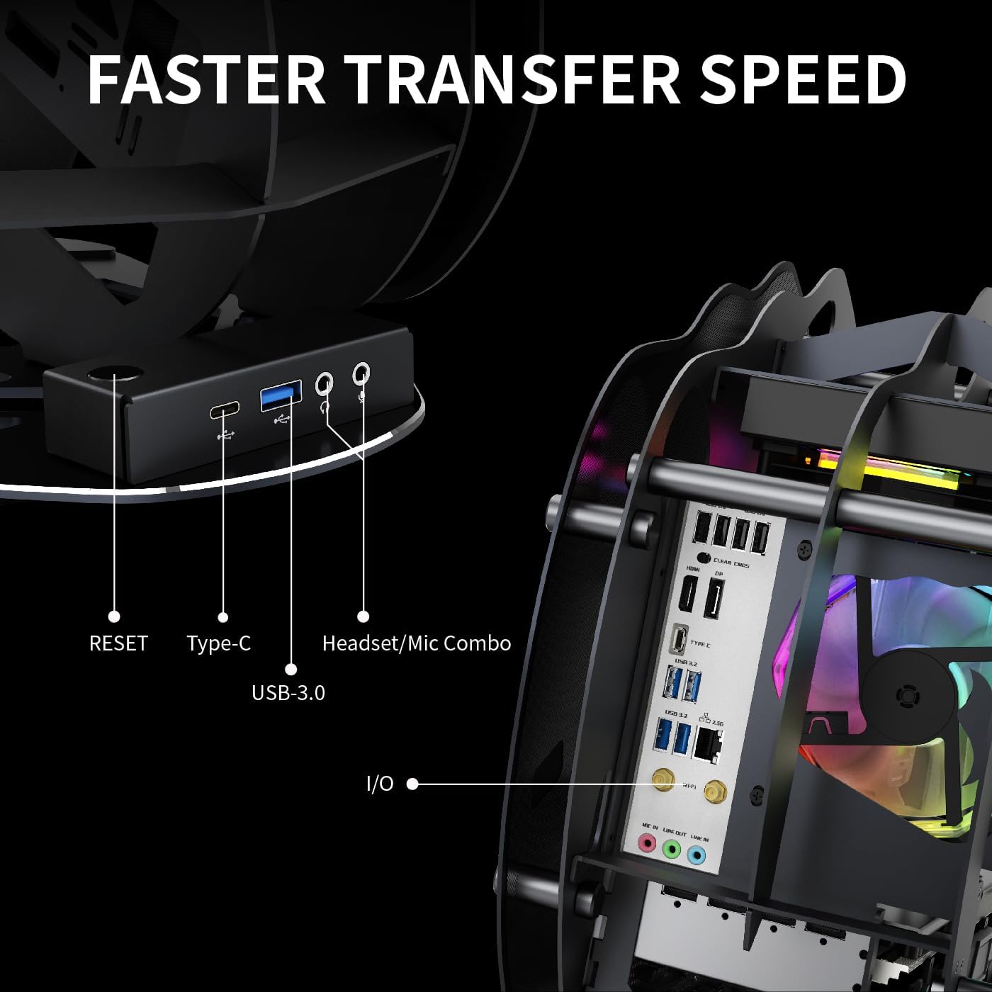 - 【Upgraded Open-Frame Design】 MegaPC M3K features an innovative open-frame design with Micro-ATX and Mini-ITX motherboard support, offering maximum airflow and optimal cooling performance ensure that you don’t sacrifice cooling for the stunning looks of a glass panel.