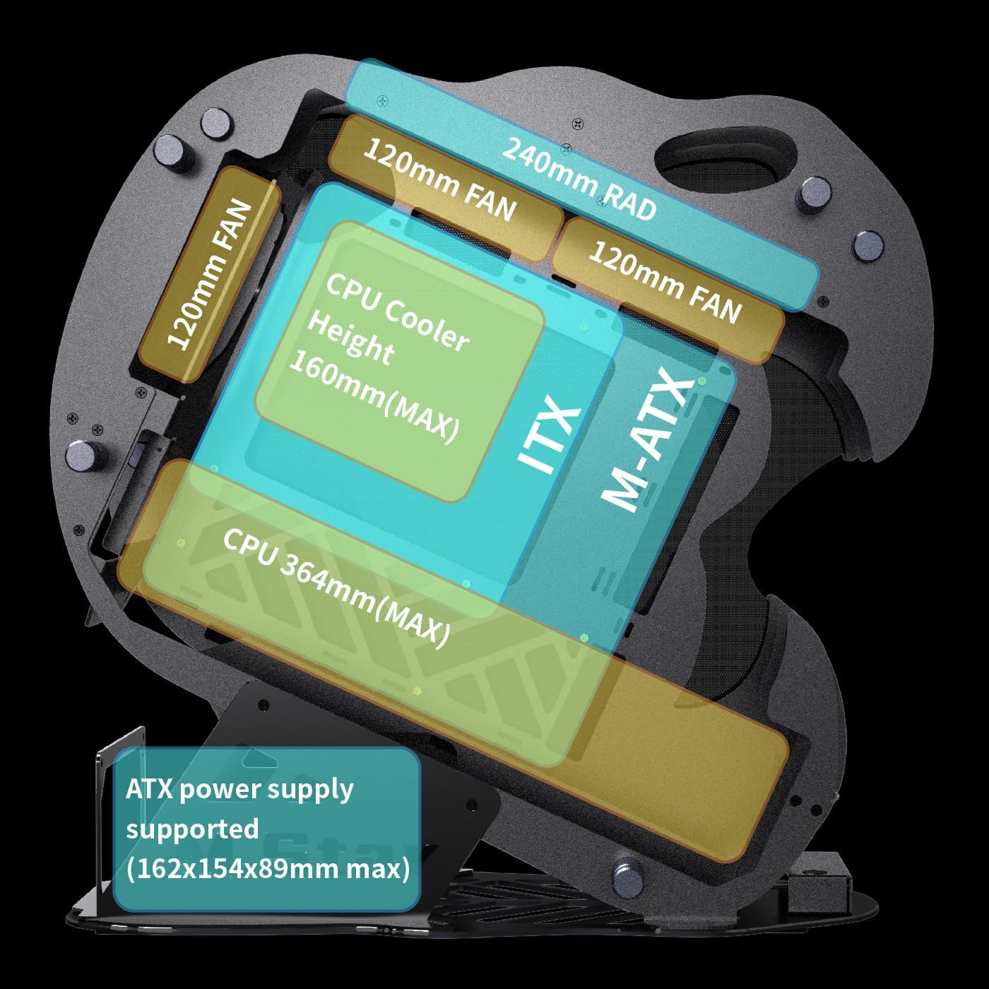 - 【Compatibility】 Supports up to 364x76x155mm GPU, 162*154*89mm(max) ATX PSU , 2.5" SSD, heat sinks up to 240mm water radiators or dual 120mm ARGB fans on top, USB-C ready and plus a rear 120mm ARGB PWM fan(pre-installed).