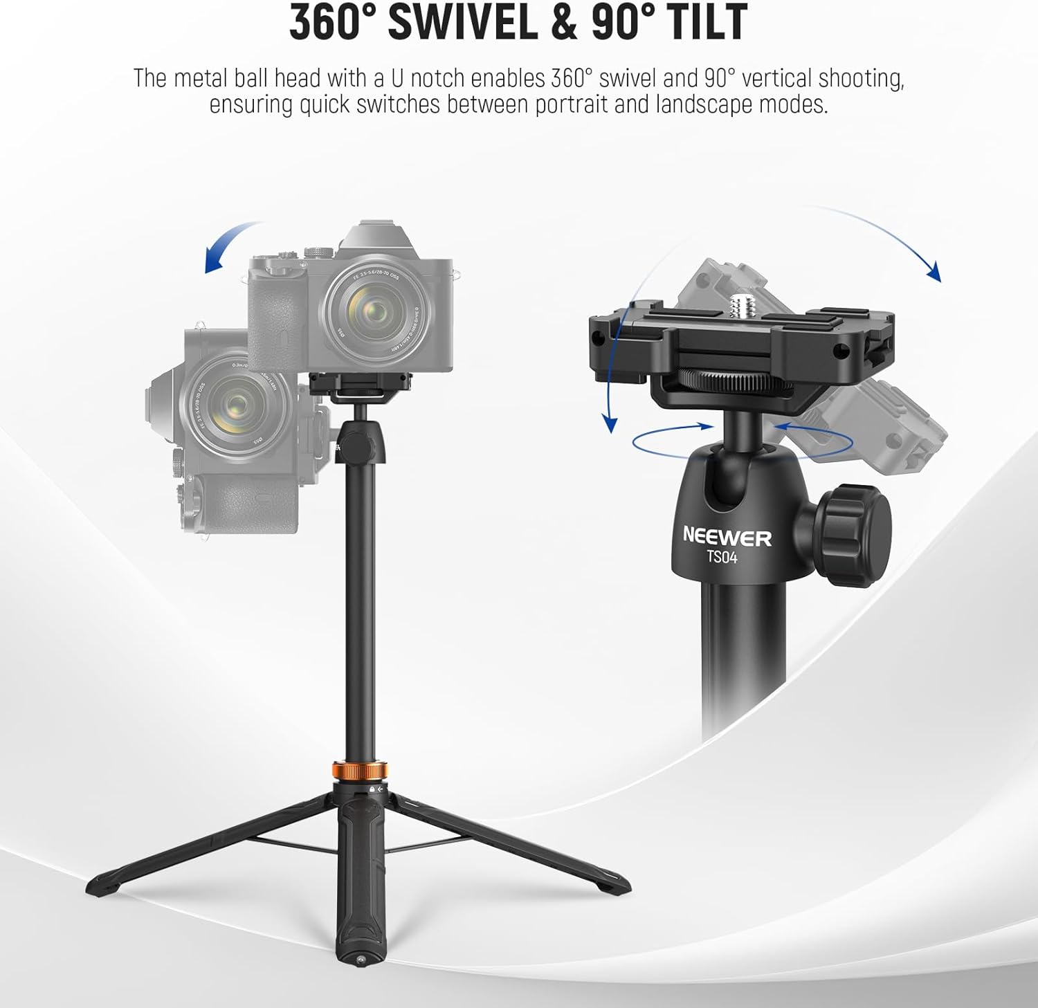 NEEWER BASICS 59"Selfie Stick Tripod Compatible with iPhone & DLSR Camera, Small Metal Compact Portable Travel Desk Stand with Remote Ball Head 2in1 Cell Phone Holder Mount for Video Recording Filming