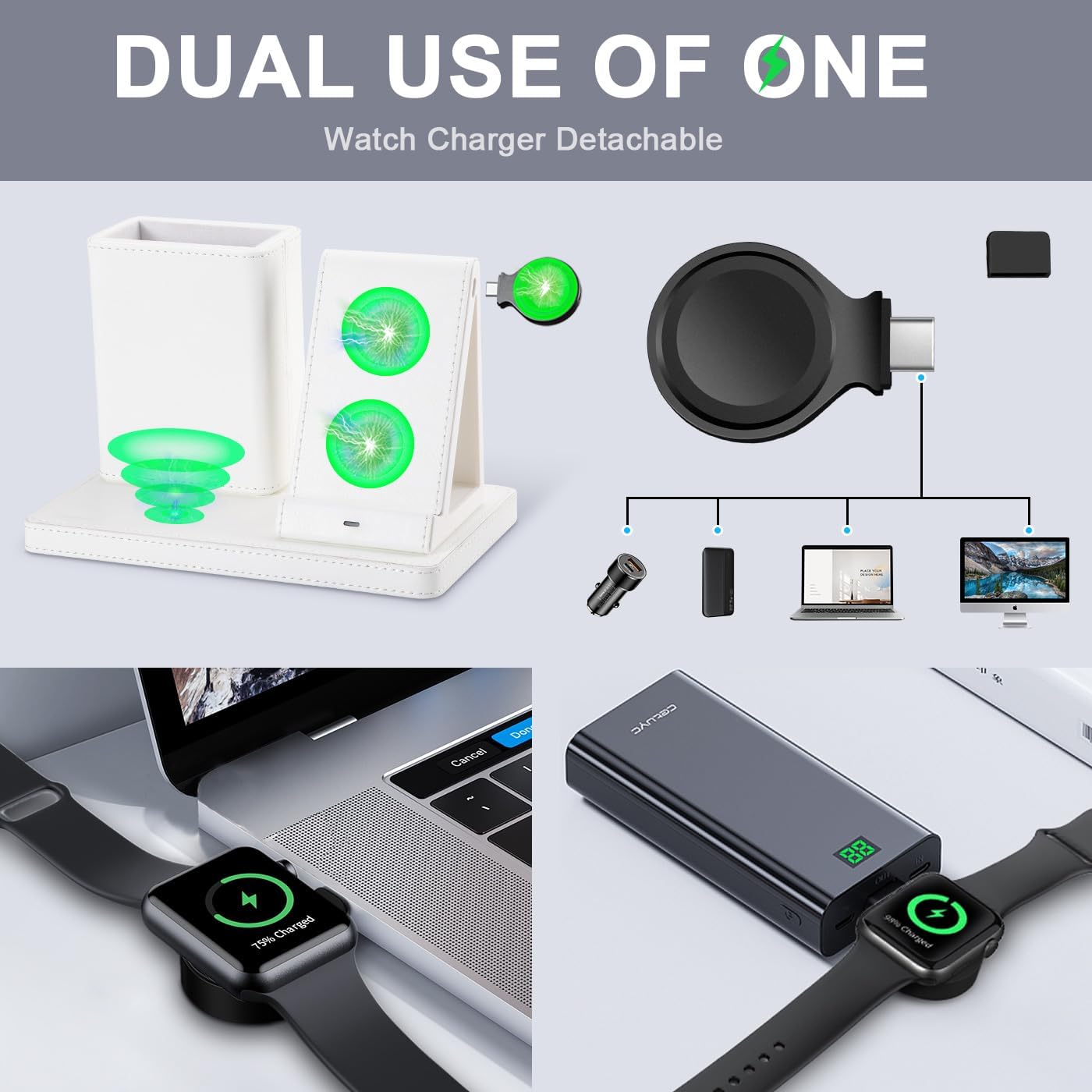 - 3-in-1 Wireless Charging: Powers phone, earbuds, and watch simultaneously, keeping your desk clutter-free.