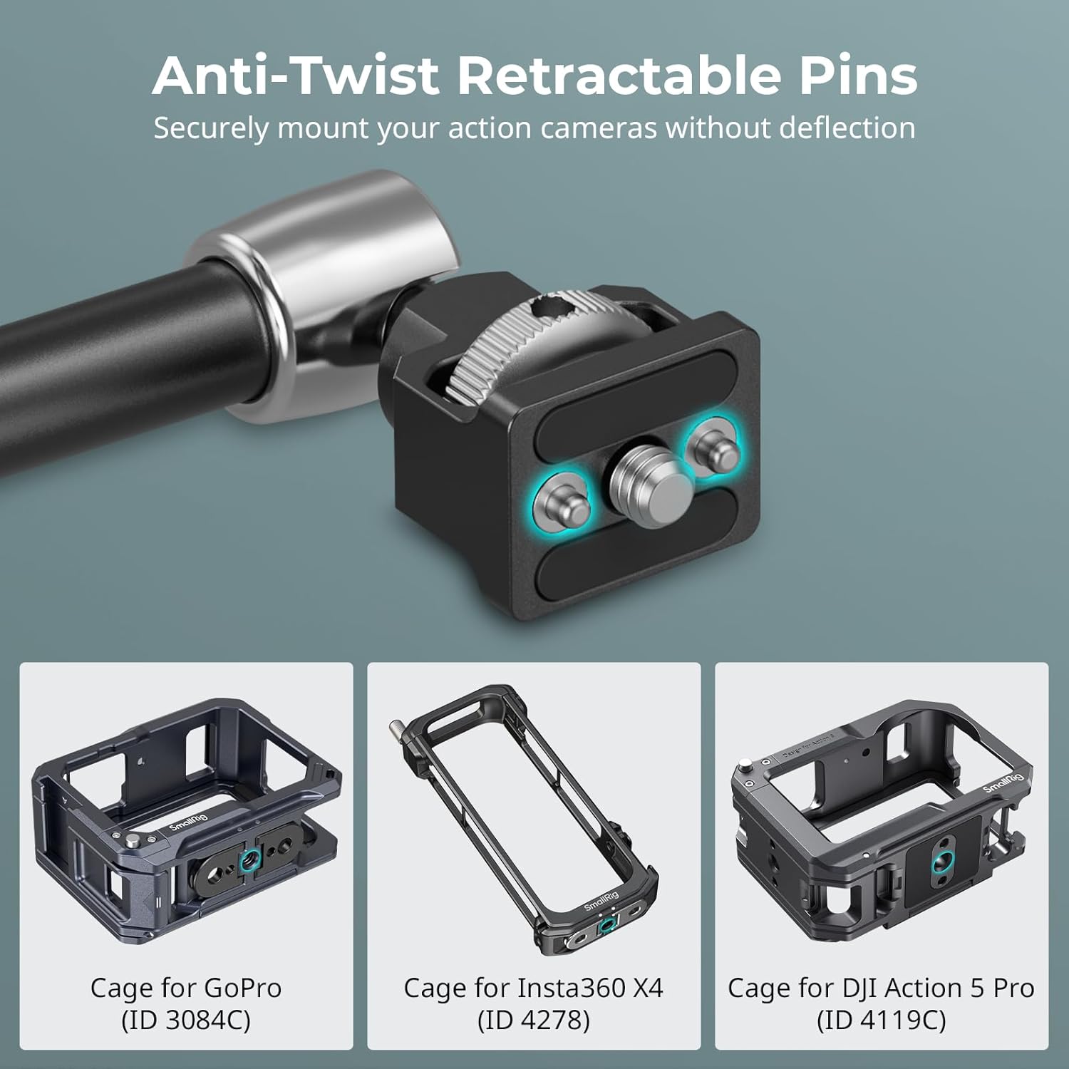 SMALLRIG Magic Arm Crab Claw Clamp, with Anti-Deflection Retractable Pin, 1.5kg Load Capacity for GoPro/for Insta360 / for DJI Action/for DSLR/for Light/for Monitor/for Phone- 5312