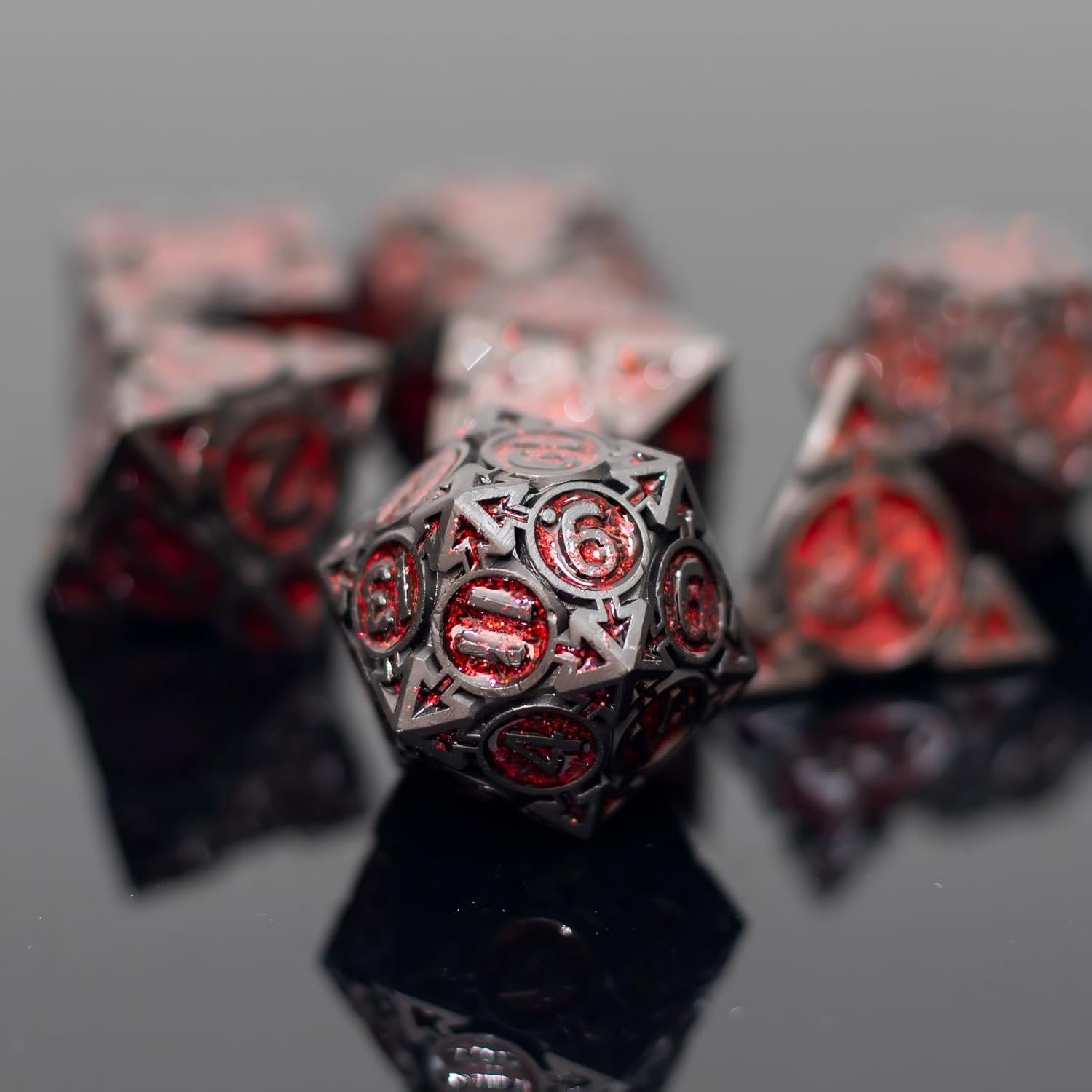 Red Black Nickel Finish Heavy Metal DND Dice Set (Barbarian) with A Metal Box, Sharp Edge Zinc Alloy D&D Accessories, D4-D20, Designed for Dungeons & Dragons Master, RPG Player, Starter