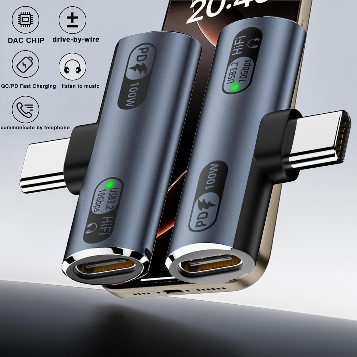 - 1.100W PD Fast Charging + Simultaneous Use: 2-in-1 Adapter charge your USB-C device (iPhone 16/15, Galaxy, iPad, etc.) at blazing-fast 100W speeds while using USB-C headphones, flash drives, card readers, or other peripherals. No slowdowns