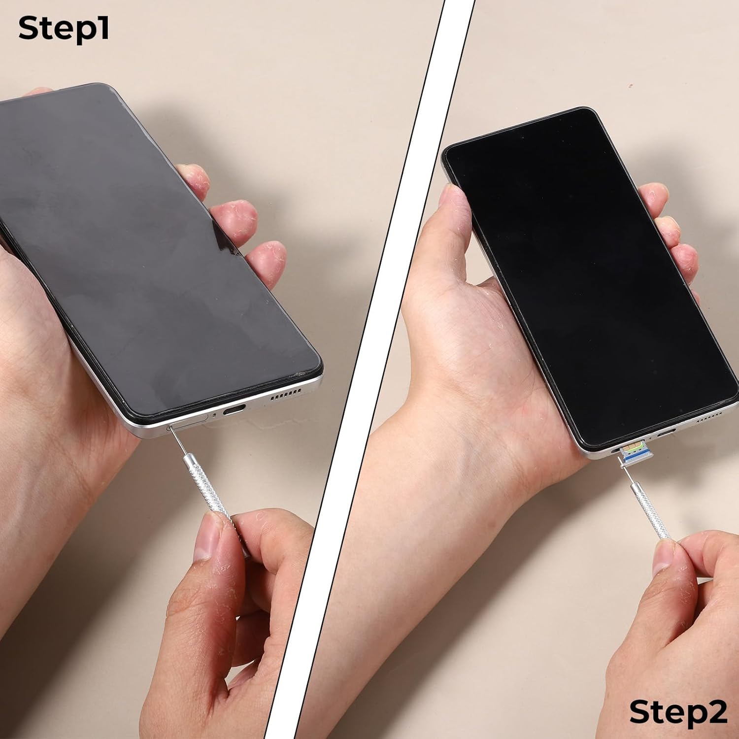 - Easy to Use: With precision-cut technology, this ejector pin tool is sharp and effective, allowing you to remove your SIM card tray effortlessly. The anti-slip handle ensures a secure grip for convenient operation