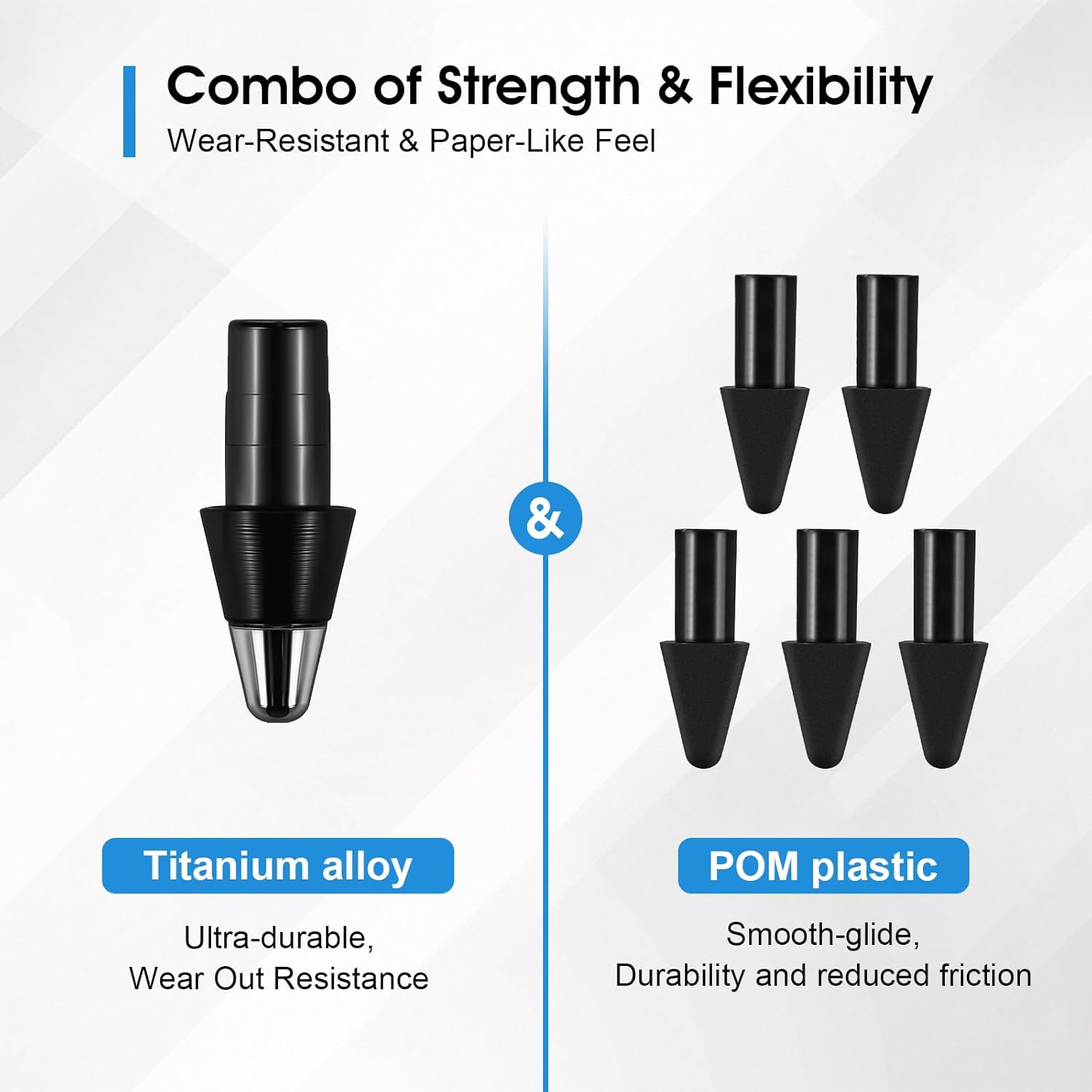 - Combo of Strength & Flexibility – Includes 1 ultra-durable titanium alloy tip for long-term use and 5 smooth-glide POM plastic tips optimized for daily writing.