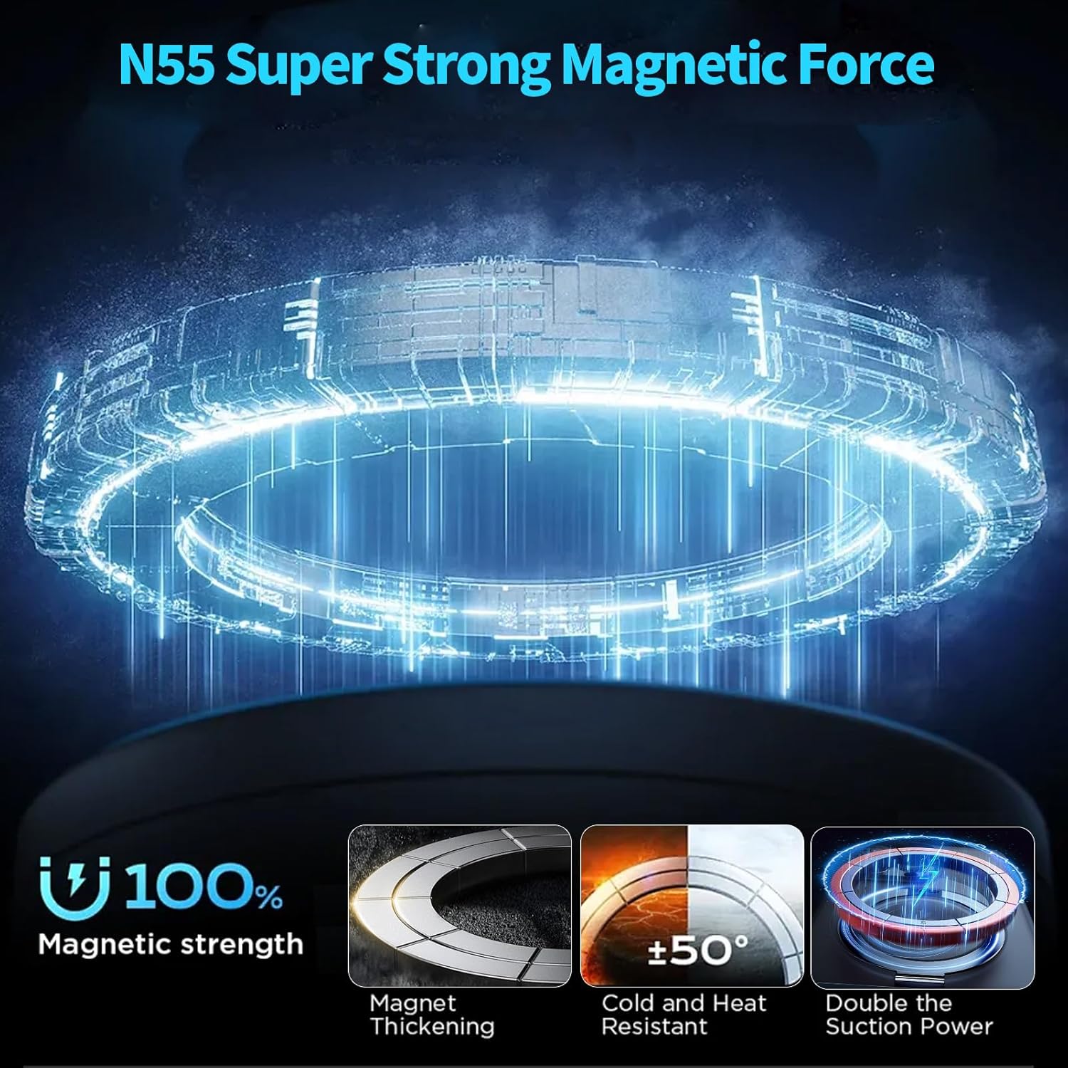 - 【Unparalleled Magnetic Security】 This powerful magnetic cell phone car mount sets a new standard for device security, using high-performance N55 magnets. It generates strong magnetic force without affecting call quality or navigation, allowing drivers to focus on the road, vacuum and magnetic attachment always remain stable without any signs of looseness in various challenging road conditions.