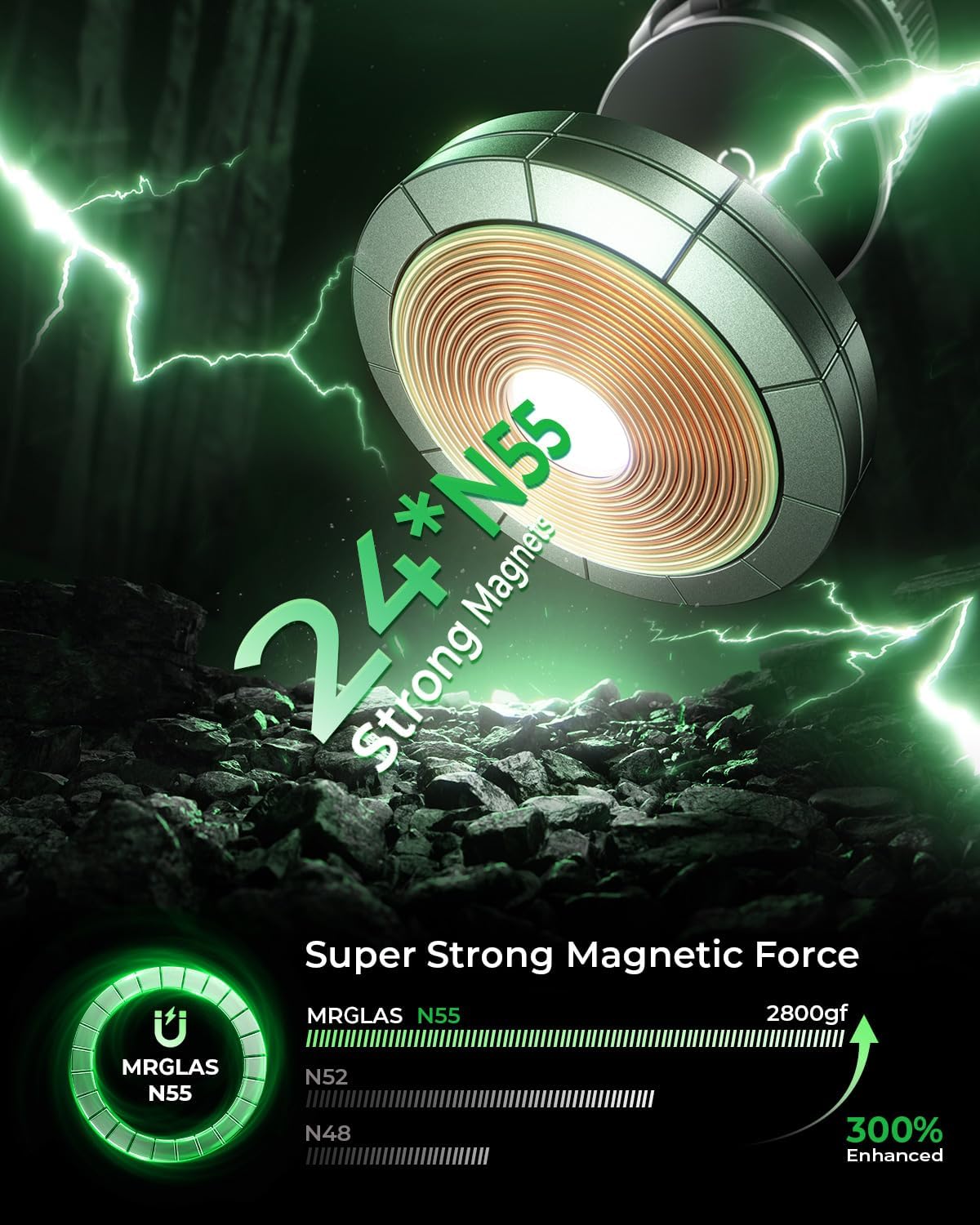 - [Supercharged Magnetic Force for Ultimate Stability]: Equipped with 24 high-performance N55 magnets, this phone mount boasts magnetic strength 240% stronger than standard magnets, providing up to 2800gf of magnetic force. It can securely hold devices as heavy as the iPhone 16 Pro Max. After passing 6,000 vibration tests and extreme road simulations, you can count on your phone to stay firmly attached, even in challenging conditions. The precise magnetic design ensures strong adhesion without interfering with phone signals, giving you uninterrupted navigation and clear calls