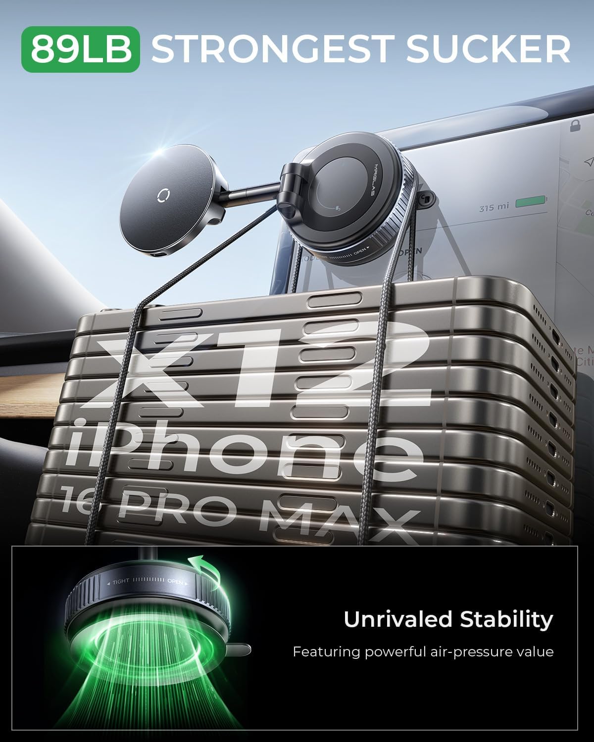 - [Strong Suction & Stable Hold on Any Road]: Engineered with advanced rotating-lock vacuum suction, this phone mount provides a 65% stronger suction than traditional press-on mounts. It remains stable on bumpy roads, during sudden stops, or sharp turns, ensuring your phone stays securely in place no matter the driving conditions. The reinforced seal maintains a secure hold in extreme temperatures (-20°C to 100°C).