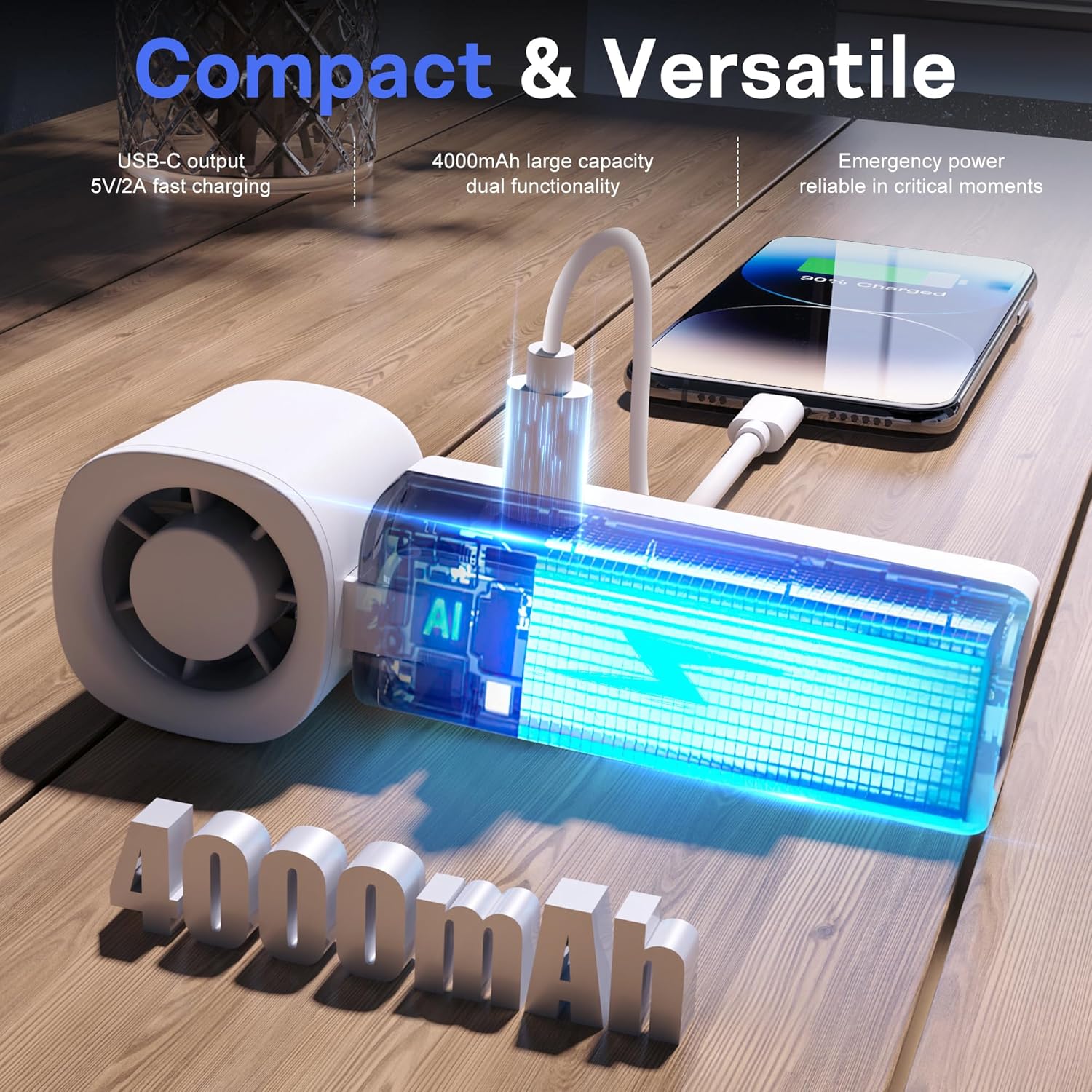 - Power That Lasts|4000mAh Battery + Emergency Charging: With a built-in 4000mAh battery, enjoy up to 14 hours of cooling on a single charge. It even includes a Type-C output port, perfect for giving your phone a quick power boost on the go