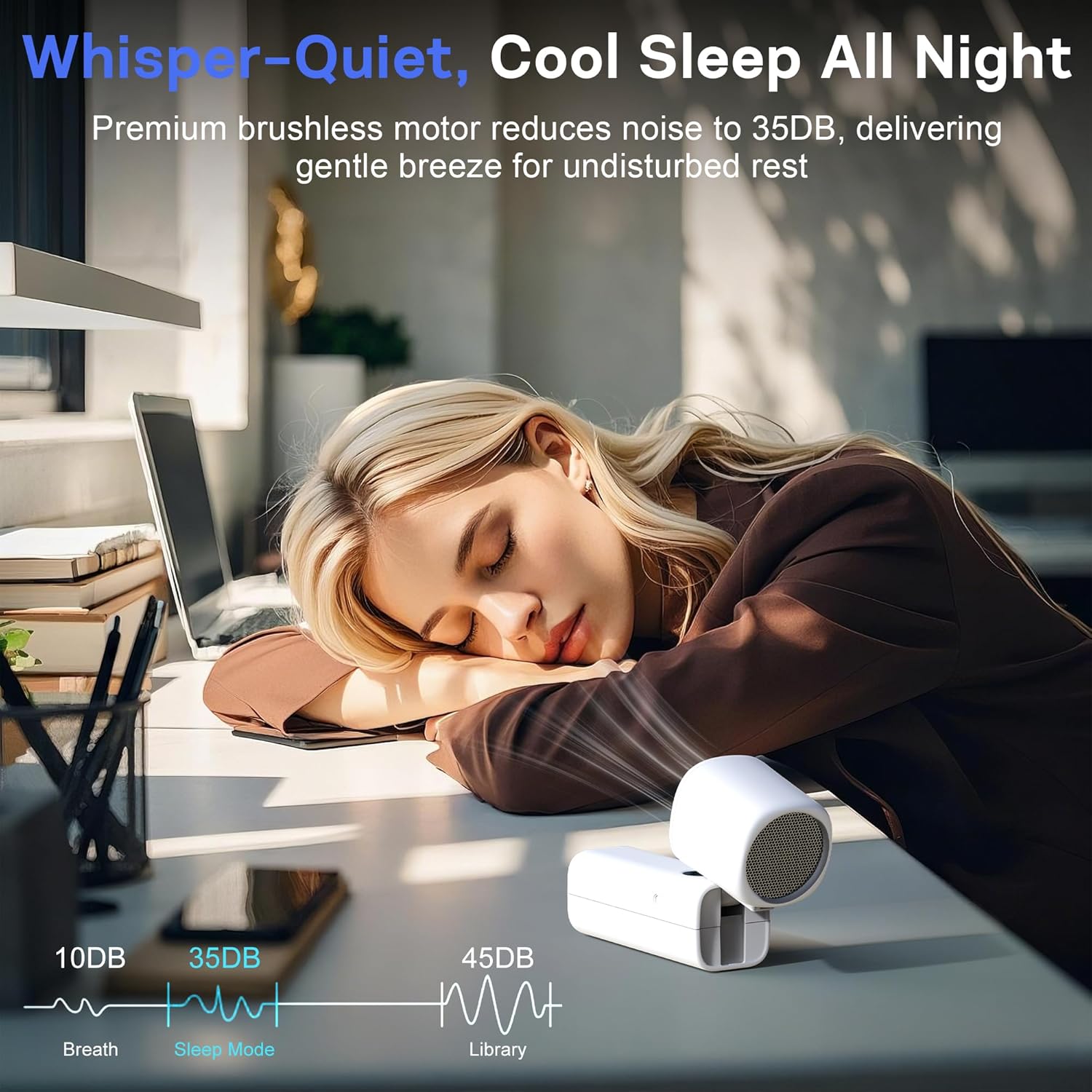 - Turbo Cooling Power|Blade Design + Brushless Motor: A high-speed brushless motor paired with blade-style fan design cuts through air more efficiently—delivering stronger wind and faster cooling when you need it most
