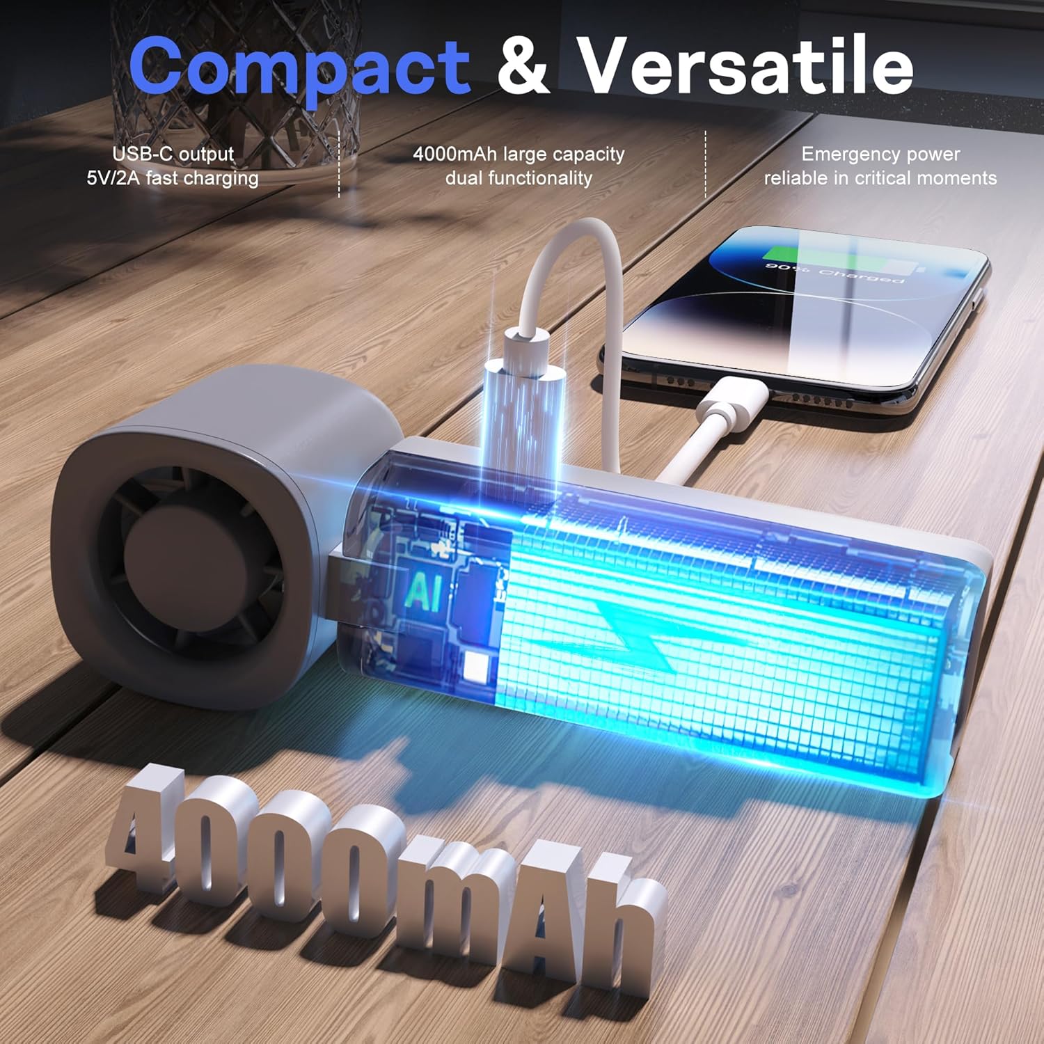 - Power That Lasts|4000mAh Battery + Emergency Charging: With a built-in 4000mAh battery, enjoy up to 14 hours of cooling on a single charge. It even includes a Type-C output port, perfect for giving your phone a quick power boost on the go