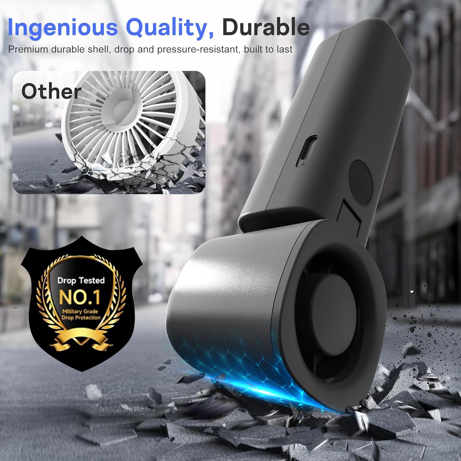- Turbo Cooling Power|Blade Design + Brushless Motor: A high-speed brushless motor paired with blade-style fan design cuts through air more efficiently—delivering stronger wind and faster cooling when you need it most