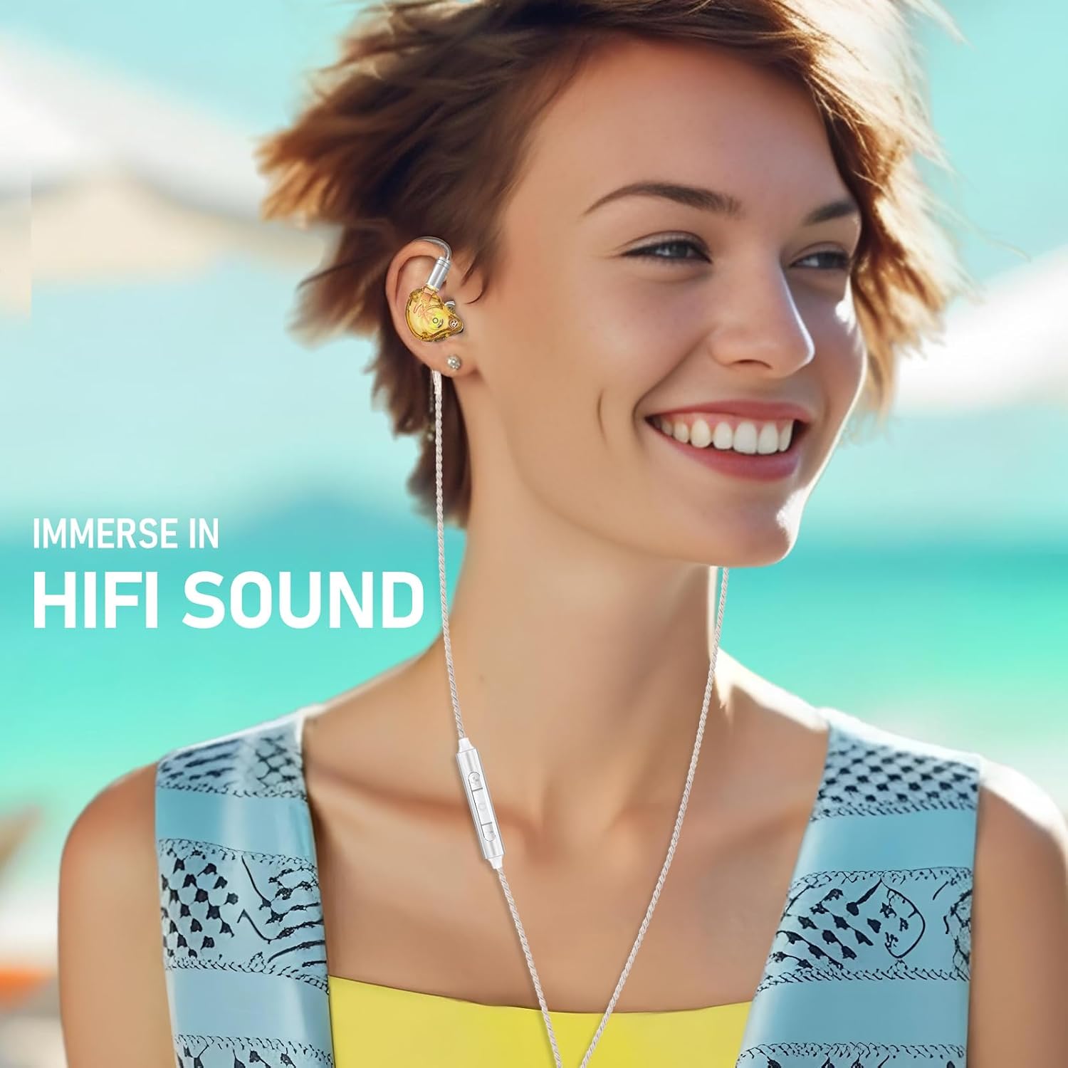 - SLEEK & DURABLE - With its sleek, semi-transparent design and durable resin shell, Vibes 202 wired ear buds come in 7 vibrant colors, allowing you to express your unique style. The 24K gold-plated MMCX and 3.5mm connectors ensure reliable, long-lasting contact, while the Litz-braided cable is both durable and tangle-resistant. Each pair is well-made with meticulous craftsmanship, from the internal components to the finished product.
