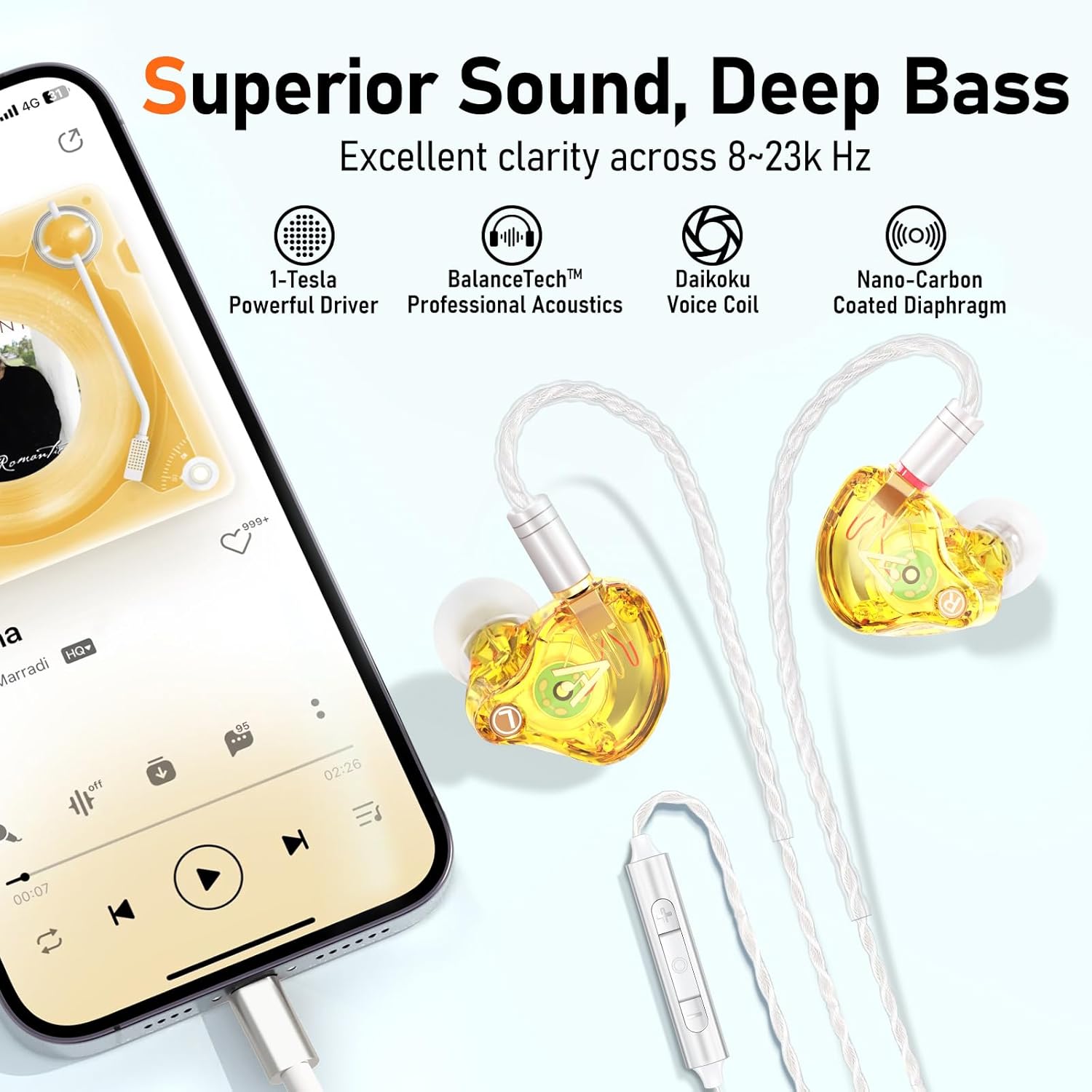 - EXCEPTIONAL HIFI SOUND - Equipped with a 1-Tesla powerful driver and master-tuned professional acoustic chambers, the Vibes 202ML HiFi in-ear monitor earphones deliver precise and detailed sound across a full frequency range from 8 to 23k Hz. The high-purity, silver-plated, Litz-braided audio cable ensures stable and lossless sound transmission for pure, unaltered audio.