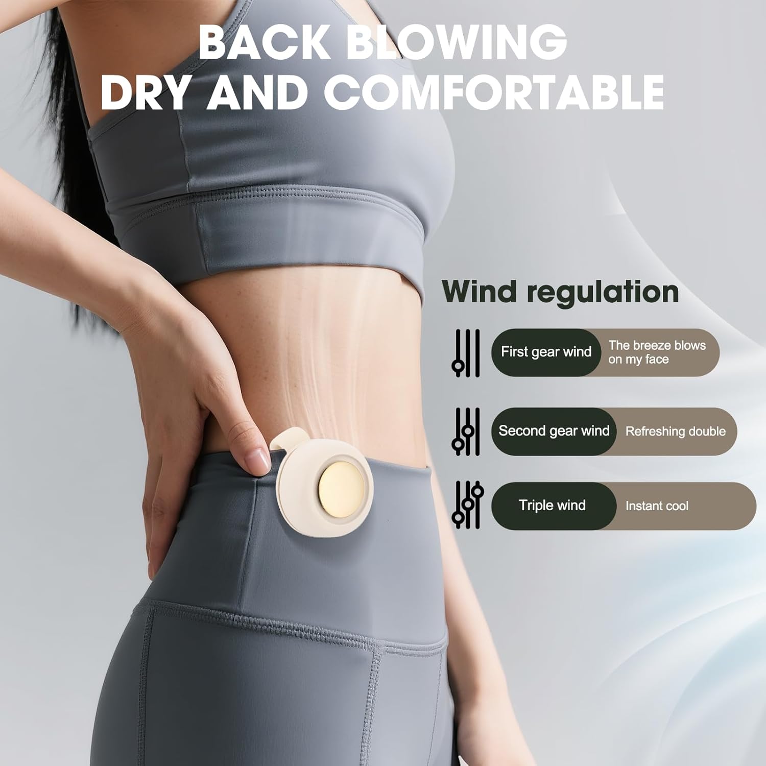 - ADJUSTABLE THREE-SPEED FAN: This portable waist-clip fan has three adjustable speeds: low, medium, and high. Press the power button to select the appropriate wind speed according to your preference, Customize your cooling experience with 3 adjustable speeds, ensuring you stay comfortable in varying temperatures and situations.Designed without blades, when using without worrying about hair getting rolled in, hands free