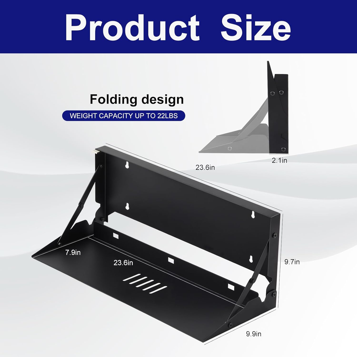 - Wall-mounted Keyboard Tray: this wall mounted keyboard and mouse holder measures 23.6 inches in length, 9.9 inches in width, and 2.1 inches in thickness; Crafted from alloy steel with a sleek black anti-scratch coating, it offers withstands daily wear