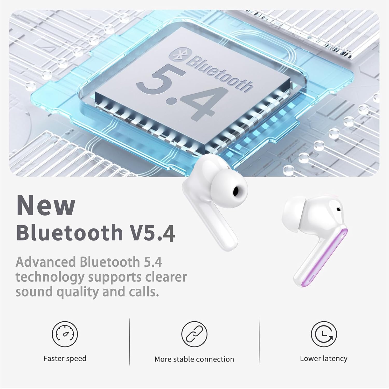 Wireless Earbuds, Bluetooth 5.4 Headphones in Ear with 4 ENC Noise Cancelling Mic, New Wireless Earphones HiFi Stereo Deep Bass 40H Playtime, in-Ear Bluetooth Earbuds LED Display IP7, USB-C, Violet