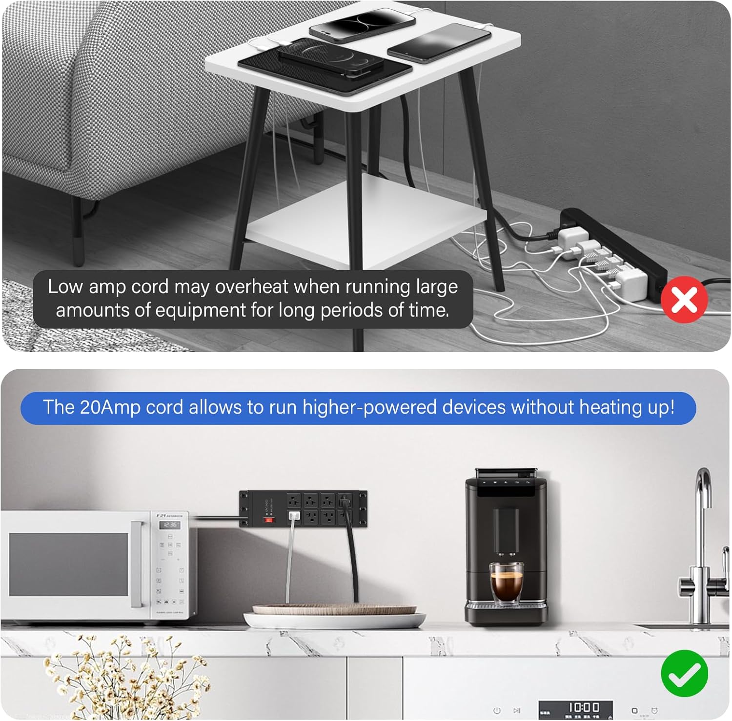 CCCEI Black Heavy Duty Power Strip Surge Protector 20 AMP, 8 Outlets 12 Gauge Industrial Shop Garage Metal Multiple Outlets, 20 FT Extension Cord 5-15P Adapter High Amp 6-20R T-Slot 20a for Appliance