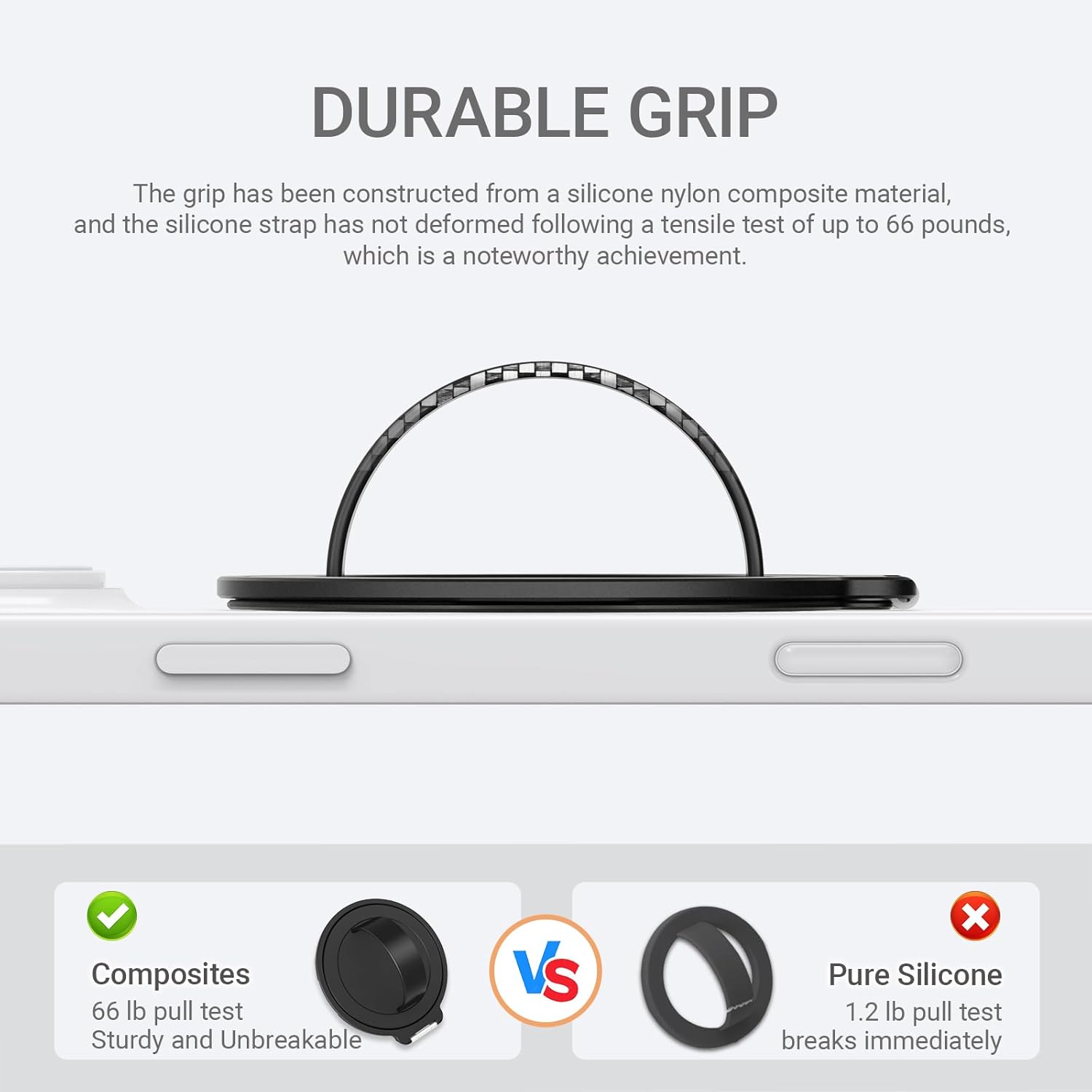 - [Food-Grade Silicone: Ultra-Soft & Skin-Safe] Crafted for unbeatable comfort—this magnetic phone grip features food-grade silicone composite, 100% skin-friendly and safe for daily use. The pebble-curved strap, with a gentle skin-loving coating, delivers incredible comfort, making every hold feel like a breeze.