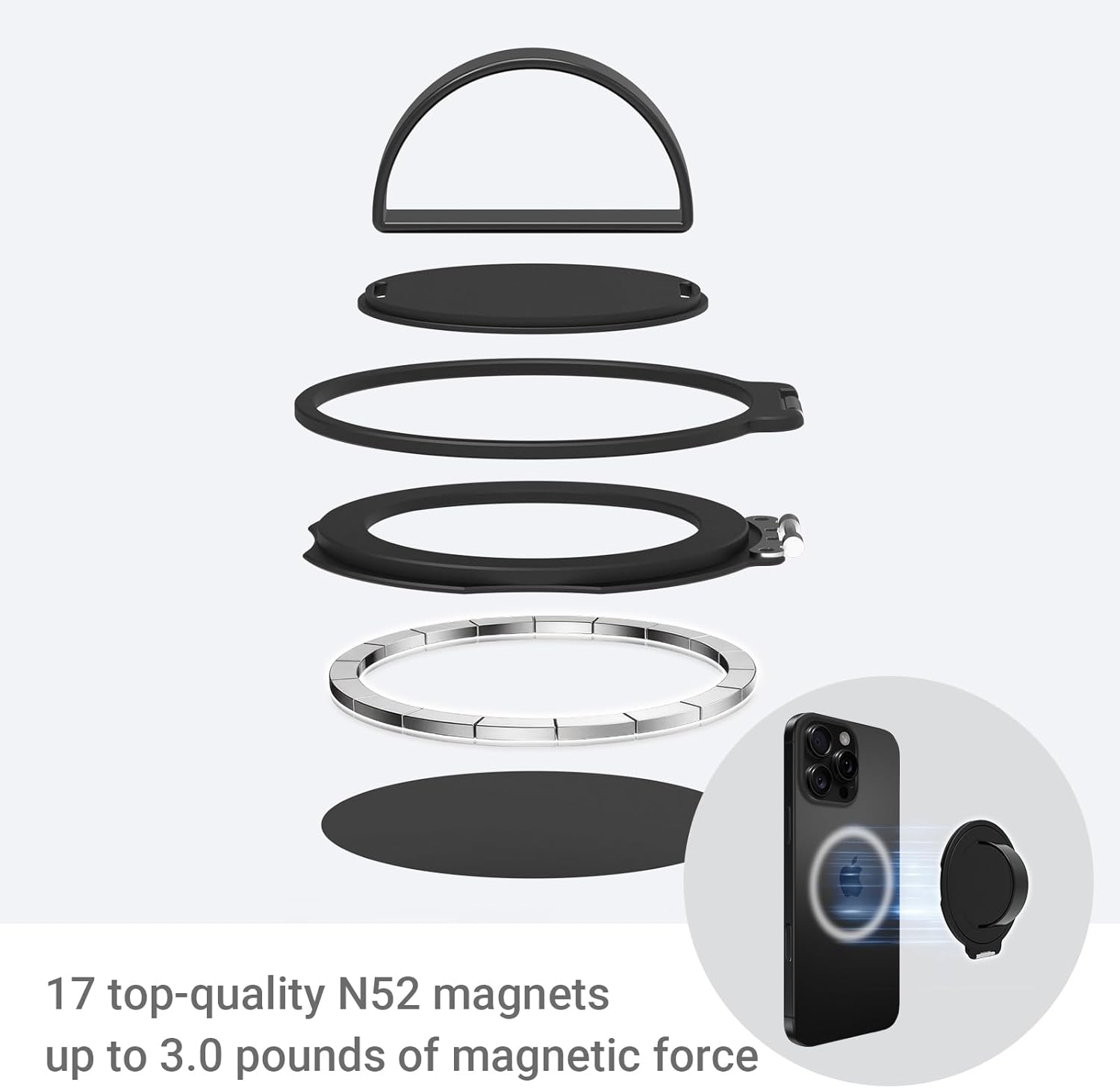 - [Military-Grade Toughness: 10,000+ Uses] CNC-machined military-grade aluminum shell (scratch-resistant, anodized finish) + a hinge tested to 10,000+ open/close cycles. 17 premium N52 magnets (3.0 lbs of force) lock your phone in place—no slips, ever. Slim 0.11-inch profile folds flat to fit in your pocket.
