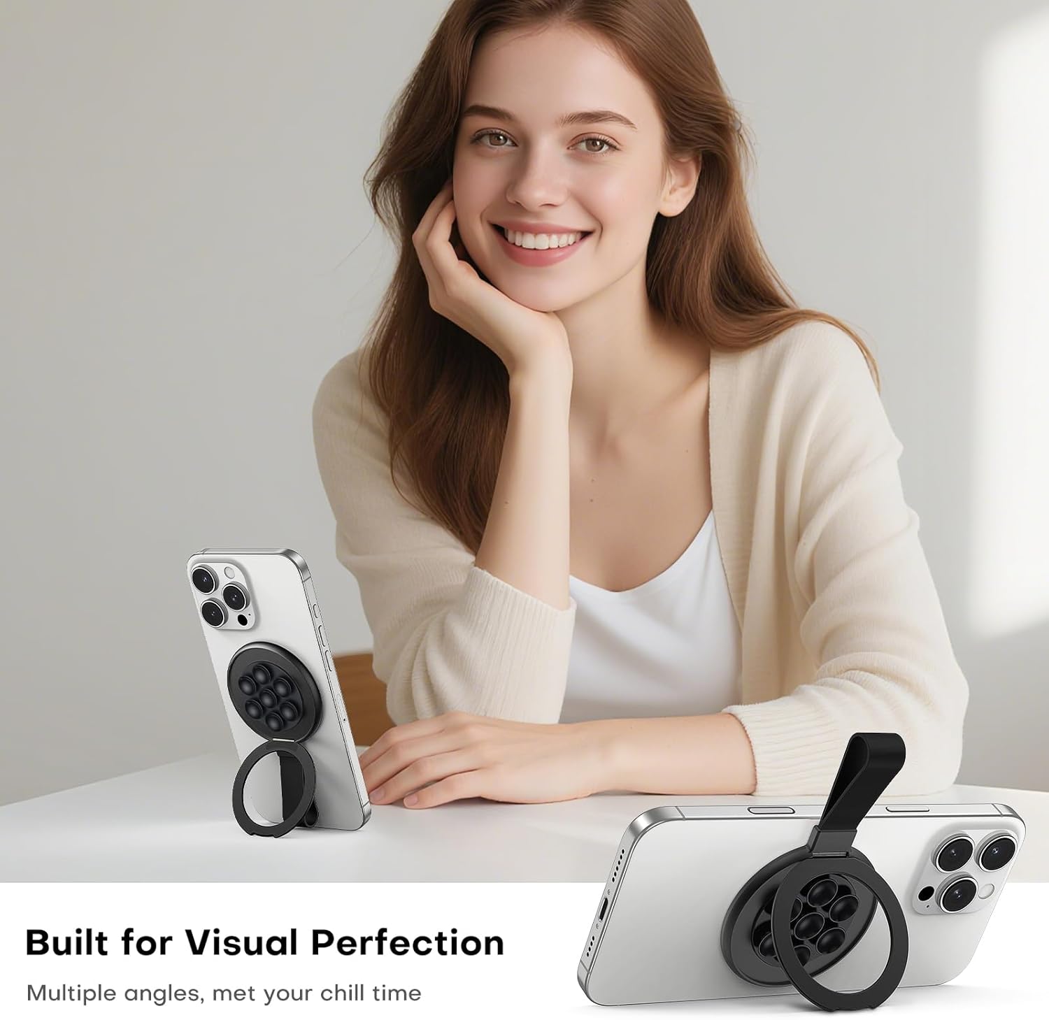 - COMFORT YOU CAN FEEL: Skin-Friendly & Nail-Safe Design: Experience a marshmallow-soft, magsafe suction phone grip aerospace-grade silicone grip that feels amazing and leaves no marks. The easy-pull, tilted ring stand effortlessly opens like a book, protecting your nails.