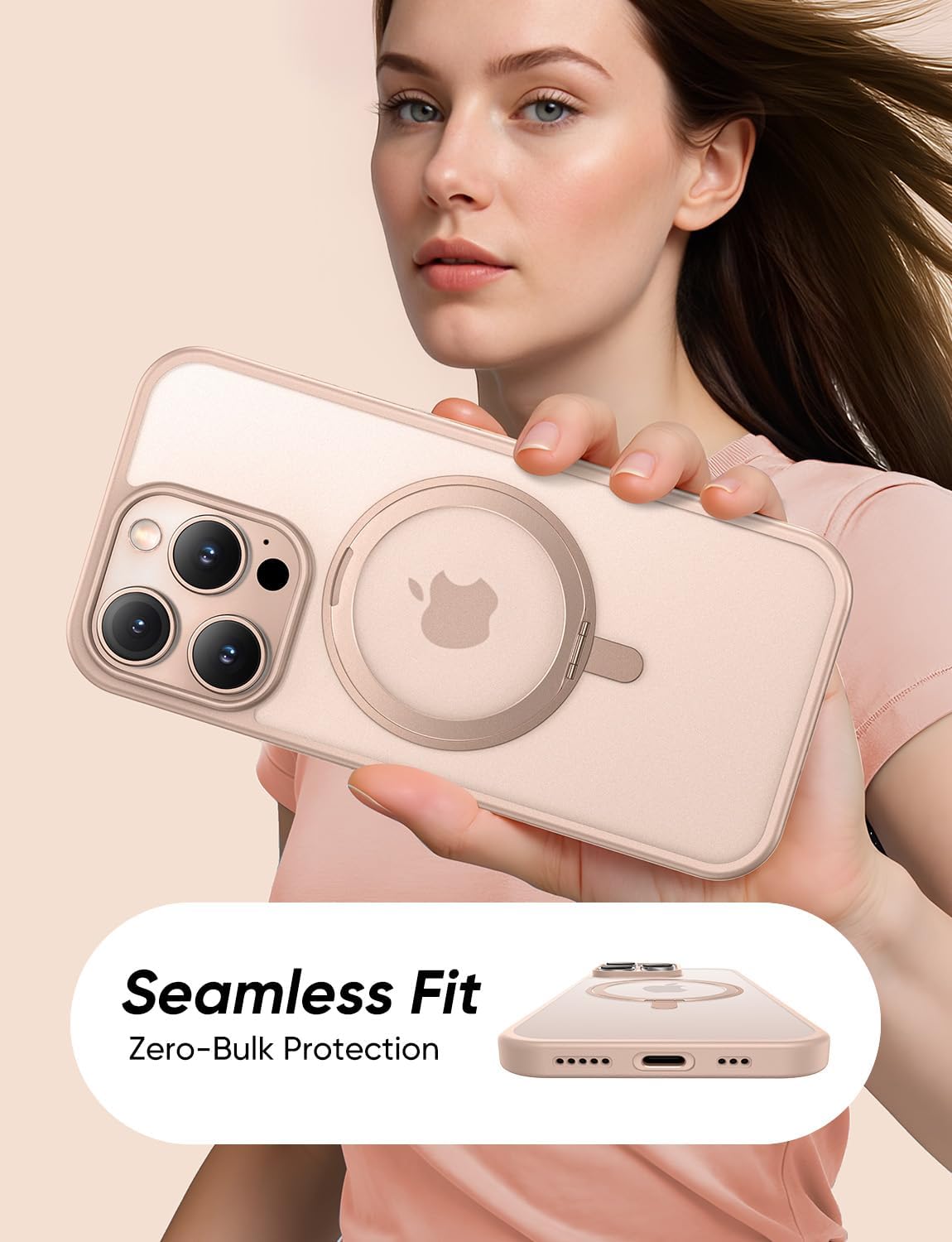MAGIC JOHN 360° Rotatable Magnetic Invisible Stand for iPhone 15 Pro Max Case [Anti-Slip Grip] [Compatible with MagSafe] 16FT Shockproof for iPhone 15 Pro Max Case with Kickstand, Rose Gold