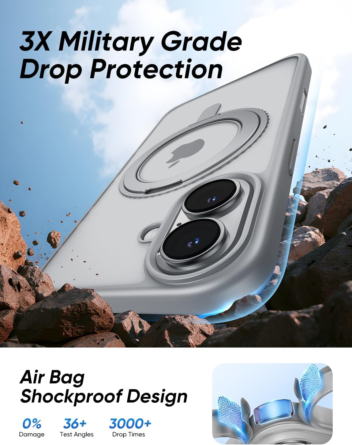 - [Tougher Than Ever] The case iphone 16 built-in 360° impact-absorbing airbags and X-Shock 3.0 four-corner airbags tect your Phone against everyday drops and bumps. Furthermore, the shockof polycarbonate back and the air pad increase its durability. A 1.8 mm offset border over the camera opening prevents the lens from being scratched, and a 0.8 mm bezel over the screen keeps your Phone screen from damage. Magic JOHN case's DURABILITY AND STURDINESS surpass most general Phone cases.