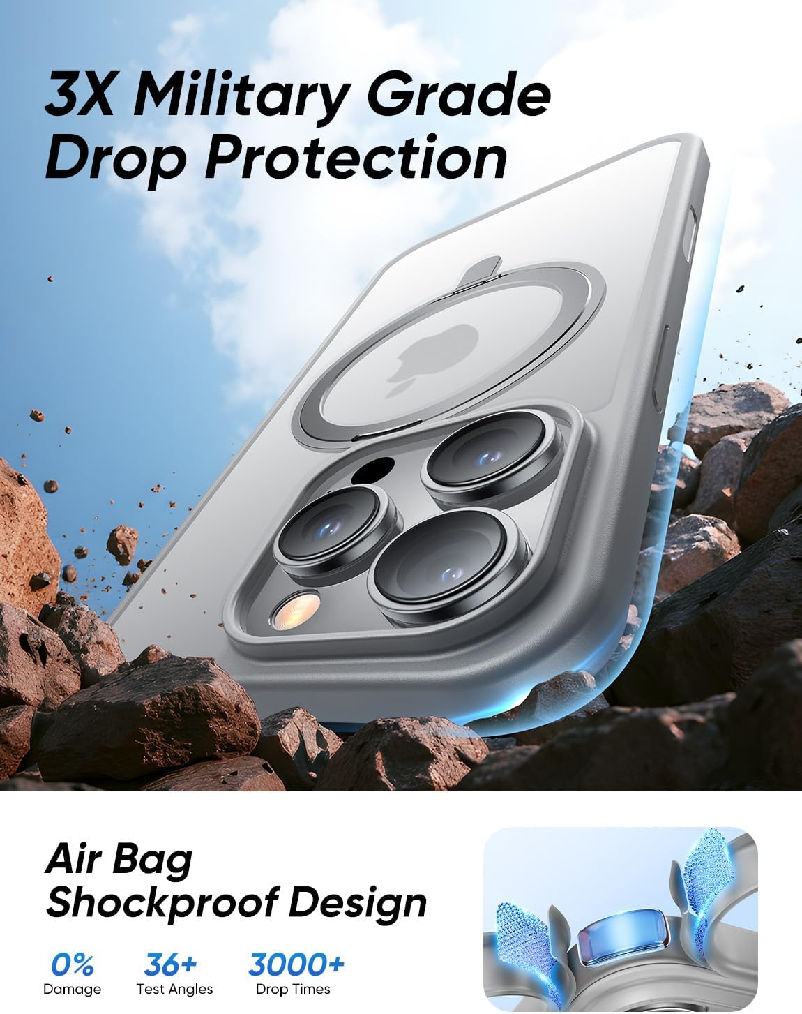 - [Tougher Than Ever] The case iphone 16 pro built-in 360° impact-absorbing airbags and X-Shock 3.0 four-corner airbags protect your Phone against everyday drops and bumps. Furthermore, the shockproof polycarbonate back and the air pad increase its durability. A 1.8 mm offset border over the camera opening prevents the lens from being scratched, and a 0.8 mm bezel over the screen keeps your Phone screen from damage. Magic JOHN case's DURABILITY AND STURDINESS surpass most general Phone cases.