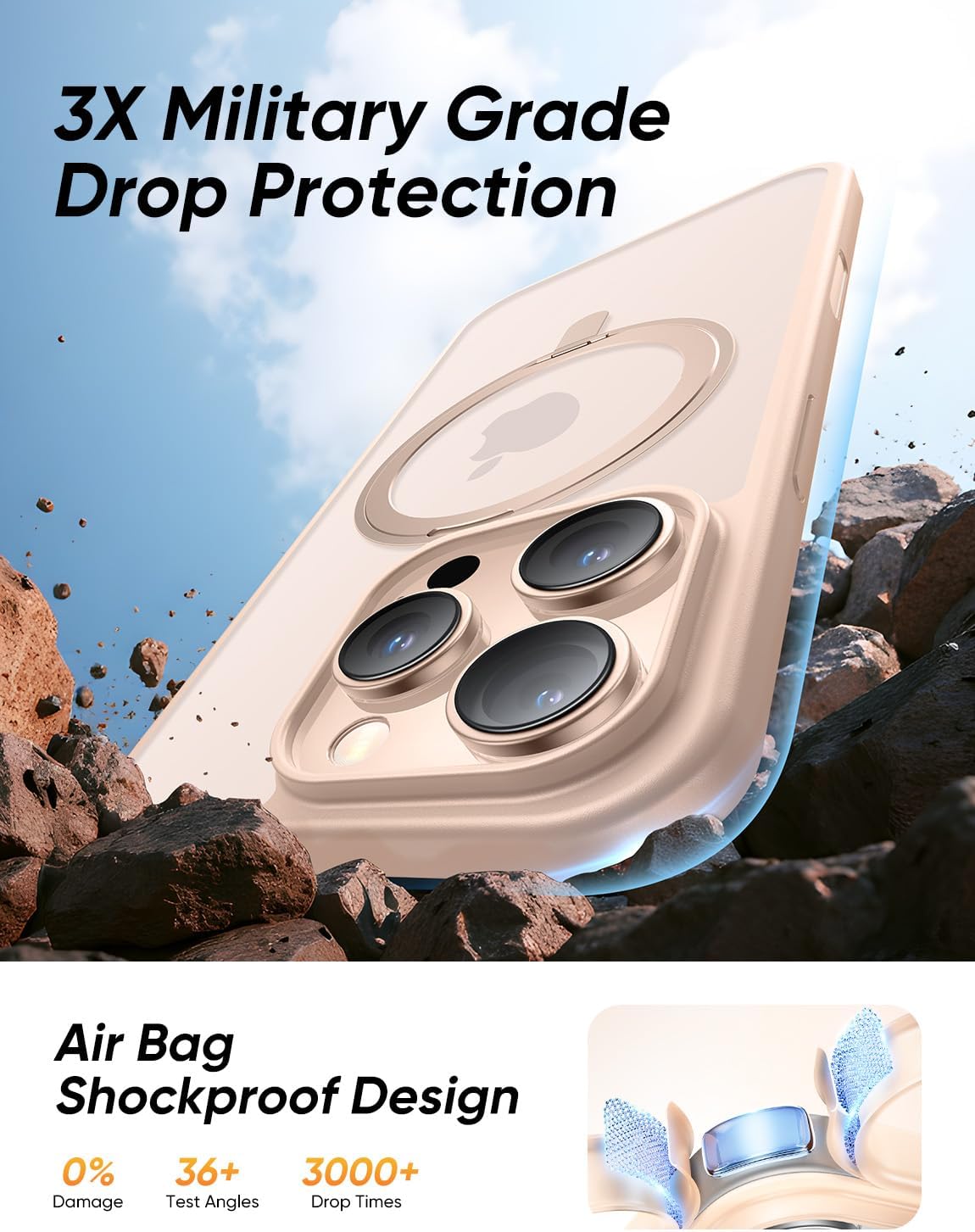 - [Tougher Than Ever] The case iphone 16 pro max built-in 360° impact-absorbing airbags and X-Shock 3.0 four-corner airbags protect your Phone against everyday drops and bumps. Furthermore, the shockproof polycarbonate back and the air pad increase its durability. A 1.8 mm offset border over the camera opening prevents the lens from being scratched, and a 0.8 mm bezel over the screen keeps your Phone screen from damage. Magic JOHN case's DURABILITY AND STURDINESS surpass most general Phone cases.