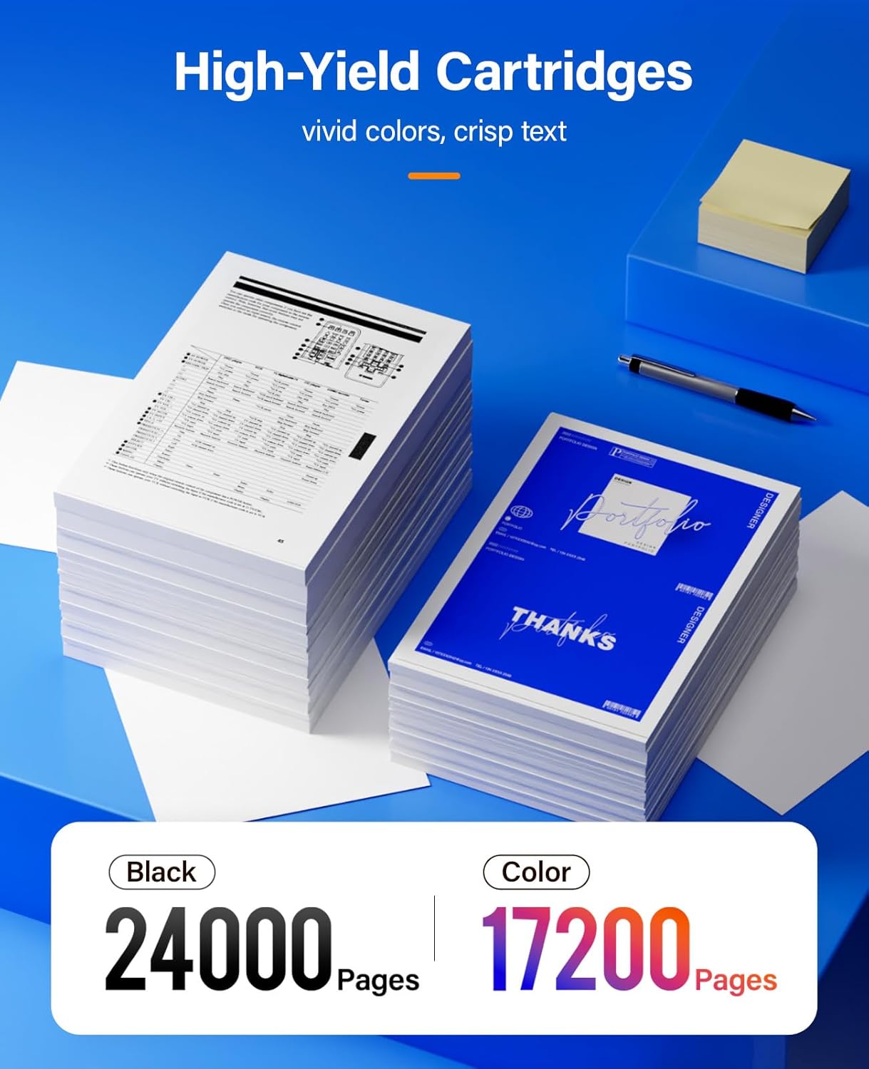 - High Page Yield: 24,000 pages for Black and 17,200 pages for Color toner cartridge (Letter/A4, at 5% coverage)
