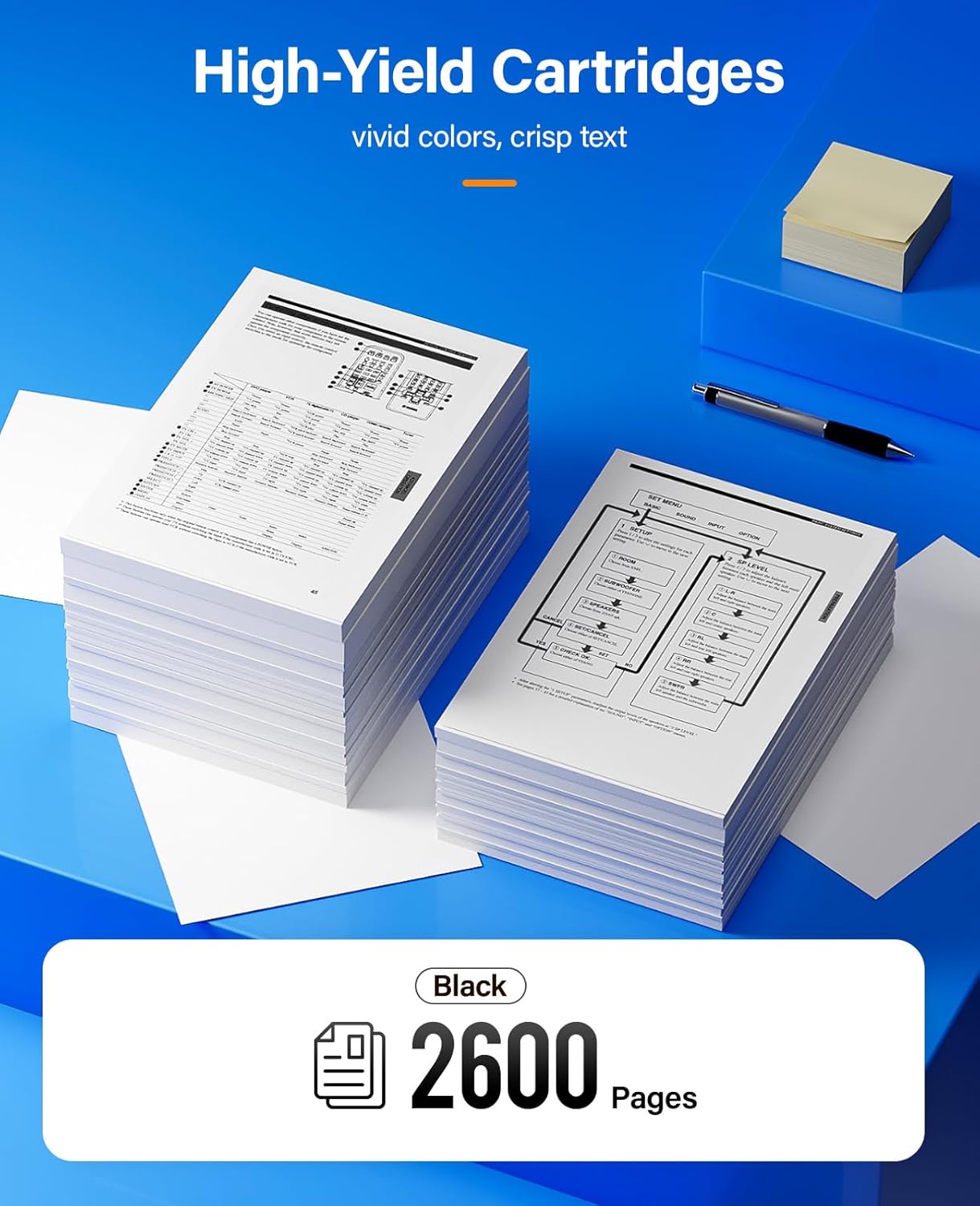 - Total Packges: Black 2-Pack E310 Toner Cartridges, Cost per page $0.01.
