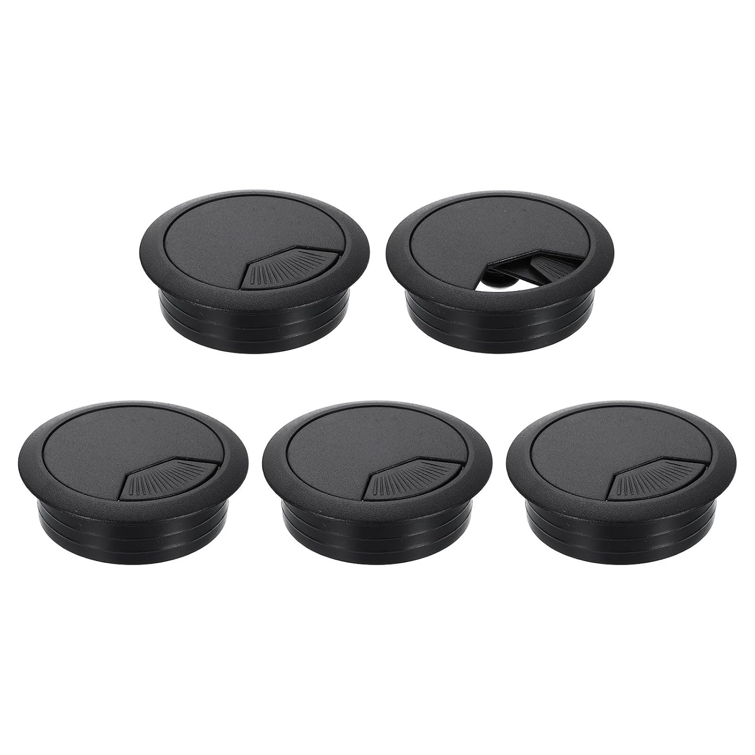 uxcell 5 Pcs 50mm (1.97 Inch) Desk Grommet, Plastic Cable Hole Cover, Wire Cord Cable Organizer for Home Office Computer Desk Cabinet, Black