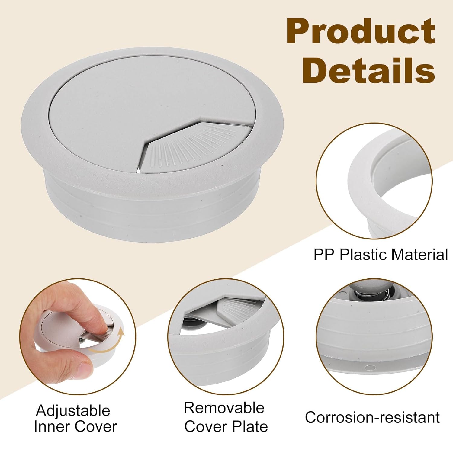 - [Function] - The desktop grommet is usually used to cover the desktop holes for wire management, protecting pipes or wires from scratches on rough corners or rough surfaces, and providing a clean and organized working environment. It is designed with a removable cover plate for easy use or removal and better protection of wires