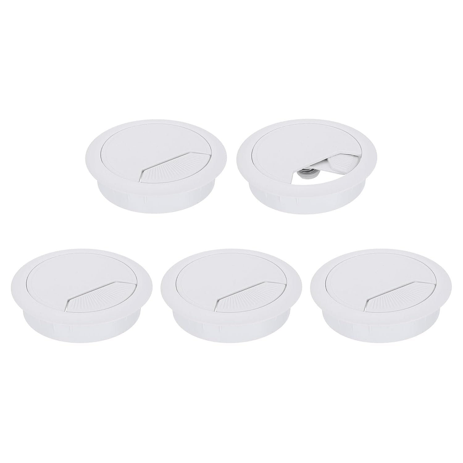uxcell 5 Pcs 60mm (2.36 Inch) Desk Grommet, Plastic Cable Hole Cover, Wire Cord Cable Organizer for Home Office Computer Desk Cabinet, White