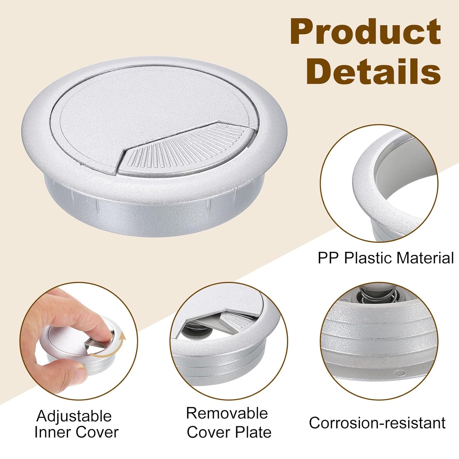 - [Function] - The desktop grommet is usually used to cover the desktop holes for wire management, protecting pipes or wires from scratches on rough corners or rough surfaces, and providing a clean and organized working environment. It is designed with a removable cover plate for easy use or removal and better protection of wires