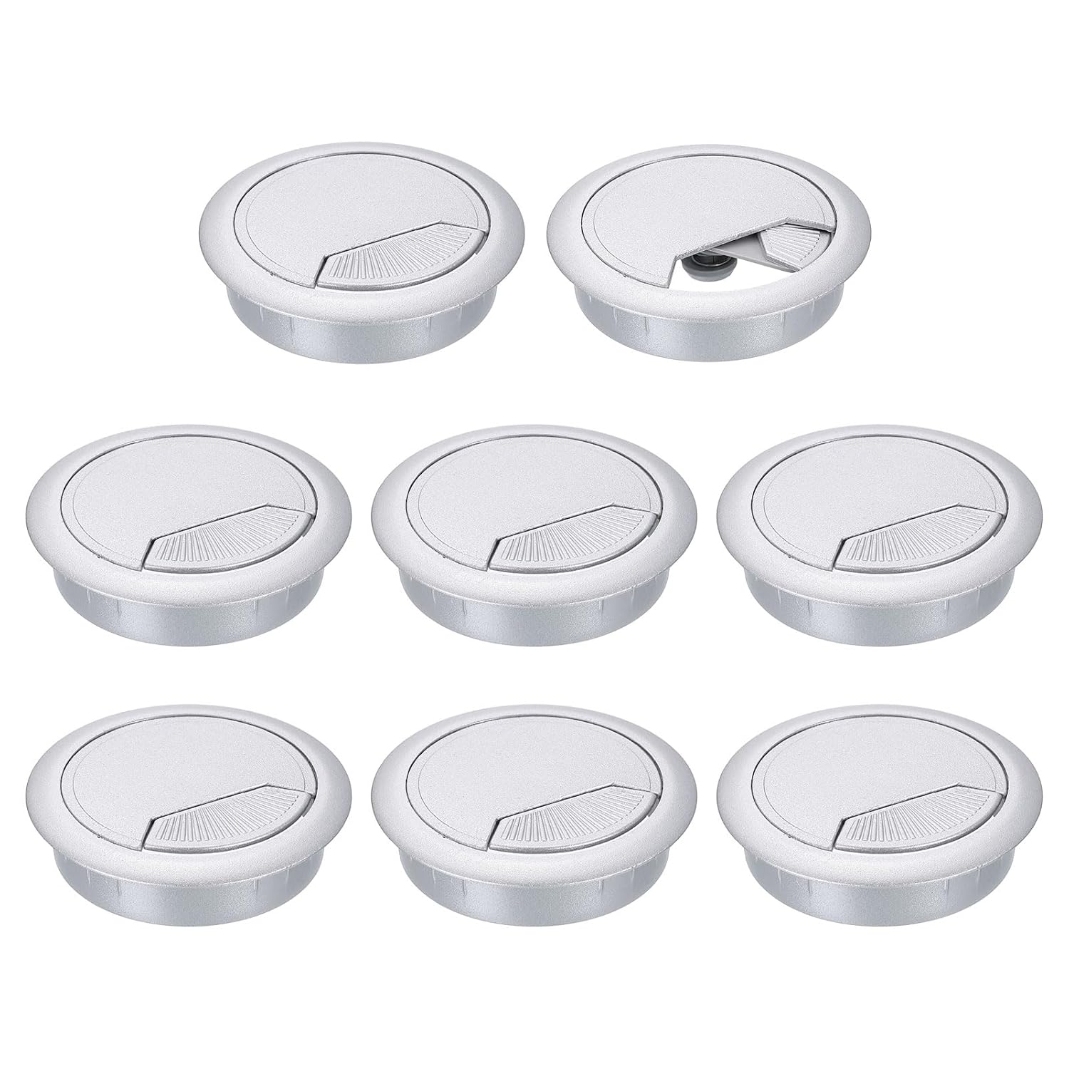 uxcell 8 Pcs 60mm (2.36 Inch) Desk Grommet, Plastic Cable Hole Cover, Wire Cord Cable Organizer for Home Office Computer Desk Cabinet, Silver