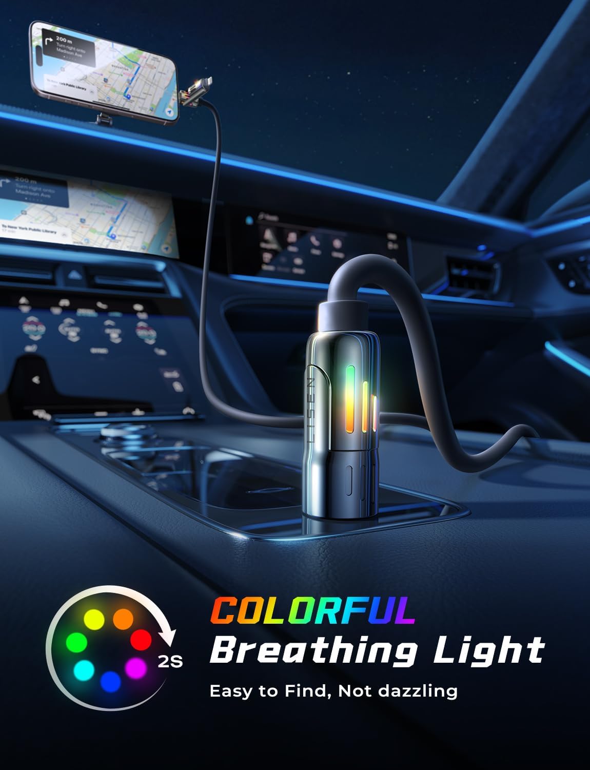 LISEN USB C to Lightning Cable, 240W 4 in 1 Charging Cable 10FT, Chubby USB A/C to C/Lightning with Light for iPhone 16e 16 15 14 Pro/MacBook/iPad/Samsung S25/Switch, Multi Chargers for All Devices