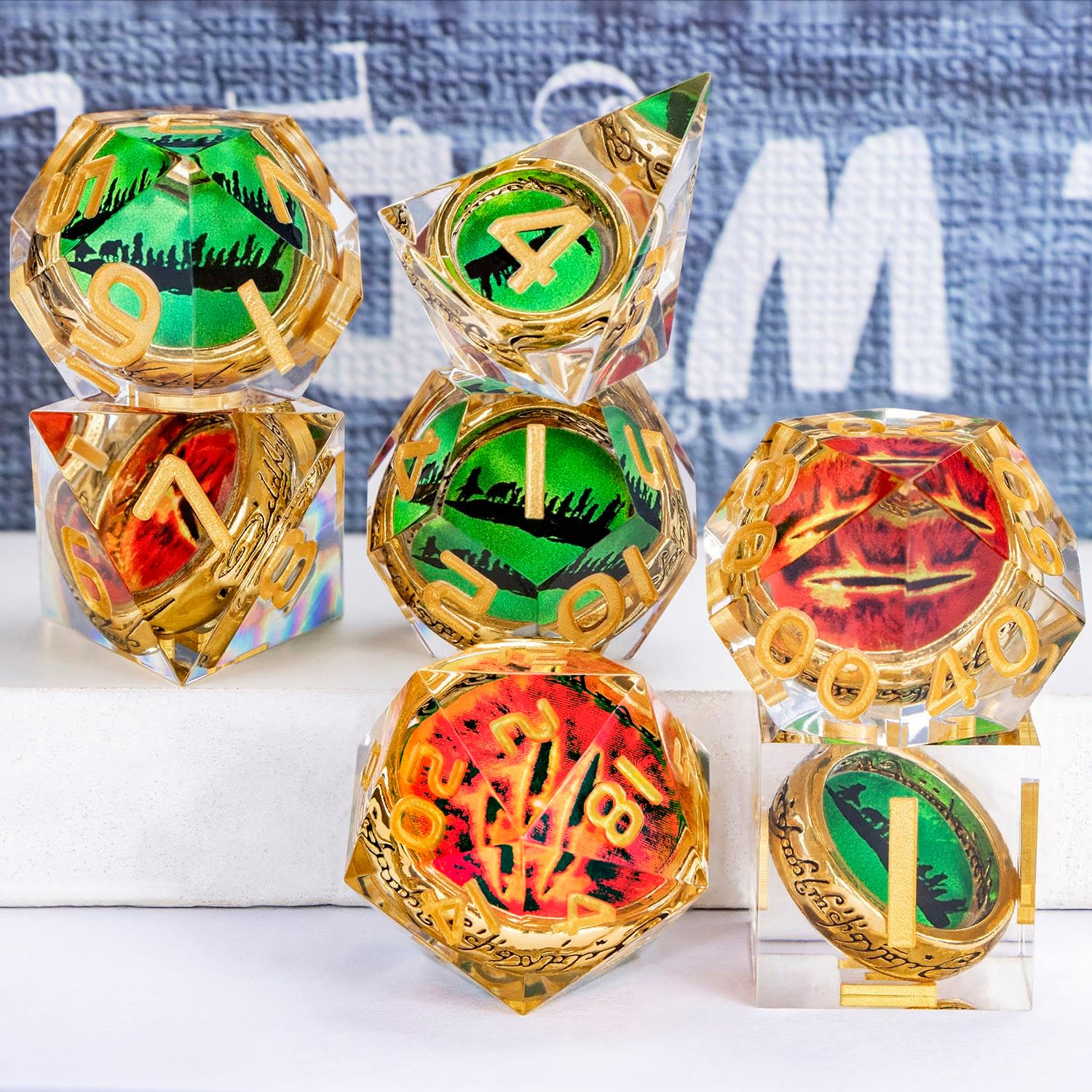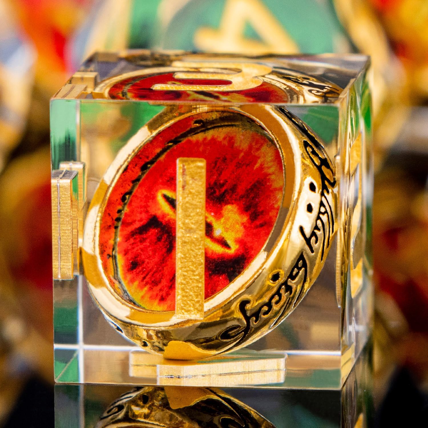 Magic Golden Ring DND Dice Set Sharp Edge Red Gaze Eye Resin Dice with Box, for use with RPG D&D Tabletop Games Lord D and D Polyhedral Dice Set