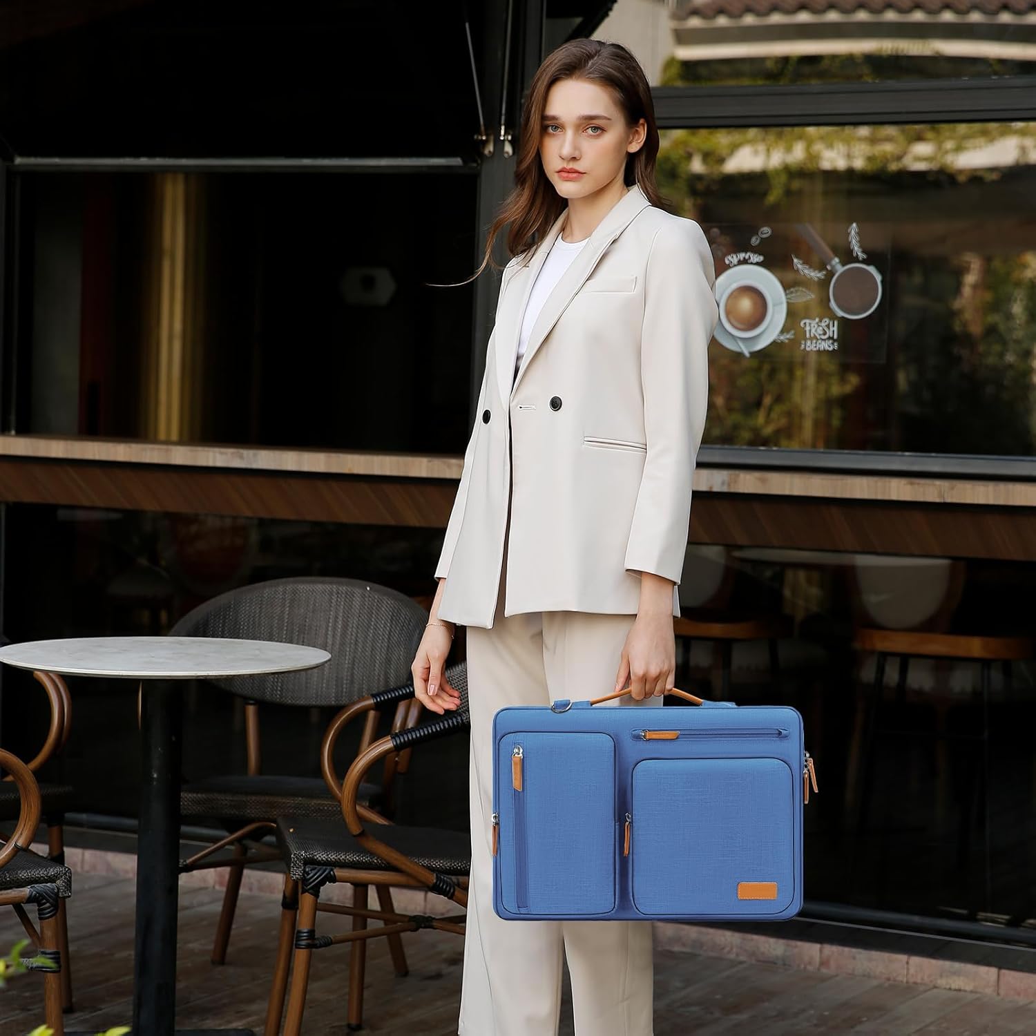 MOSISO 360 Protective Laptop Shoulder Bag,15-15.6 inch Computer Bags Compatible with MacBook Pro 16 inch, HP, Dell, Lenovo, Asus Notebook,Side Open Messenger Bag with 4 Zipper Pockets, Cadet Blue