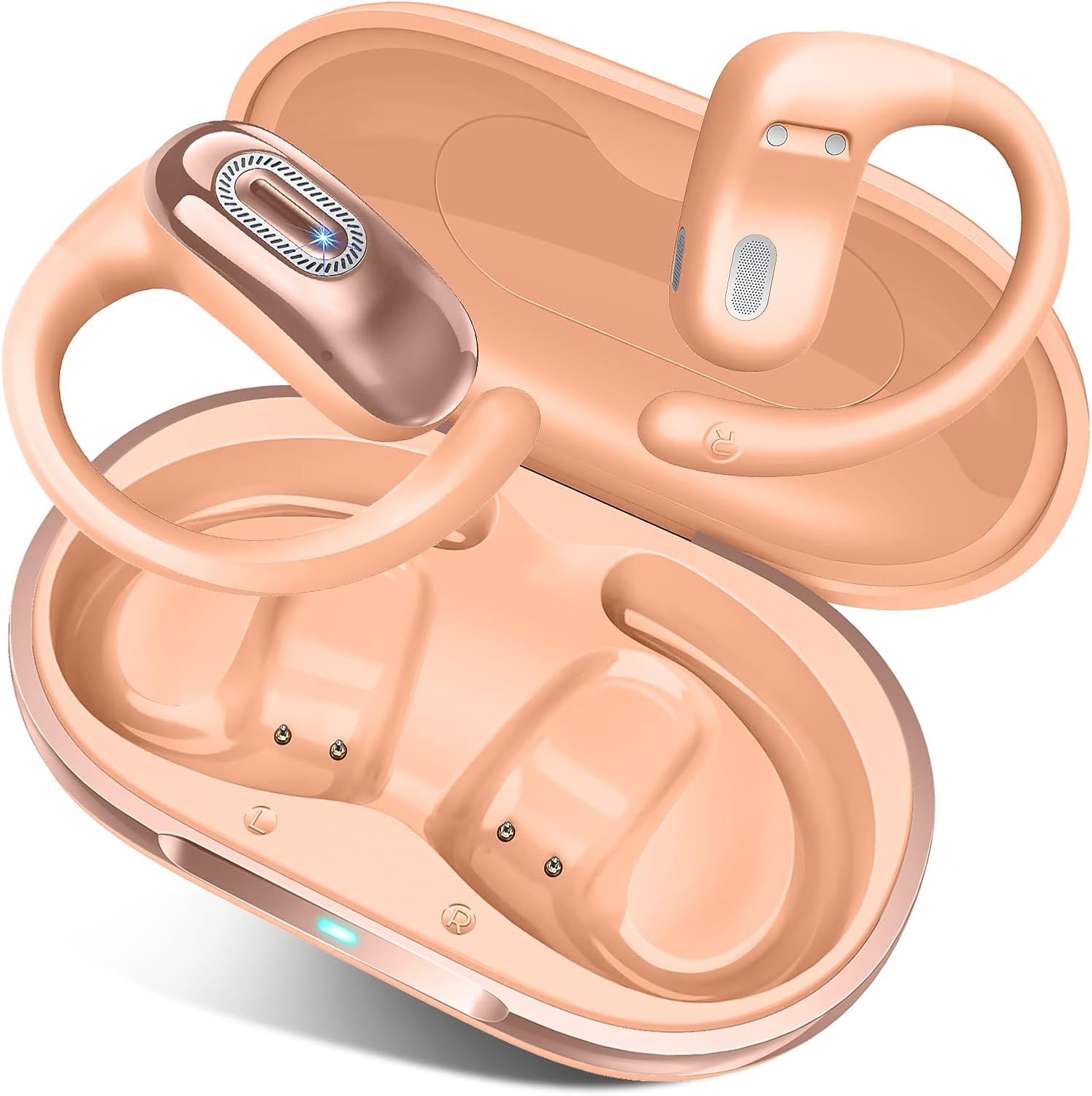 - Up to 50 Hours of Playtime with USB-C Fast Charging:Get up to 8 hours of use on a single charge and a total of 50 hours with the compact charging case. These wireless open ear earbuds are made for long days at work, at the gym, or on the road. USB-C fast charging gets you back to your music or calls quickly. Whether you're training or traveling, these headphones open ear are ready to keep up with your day.
